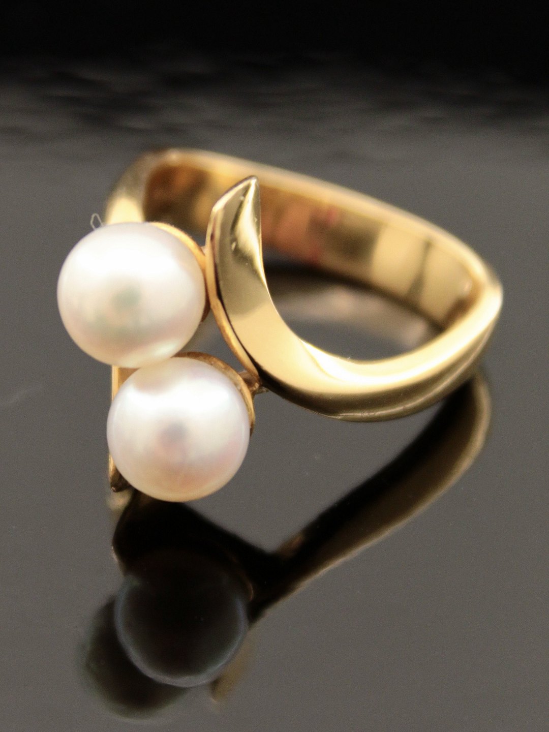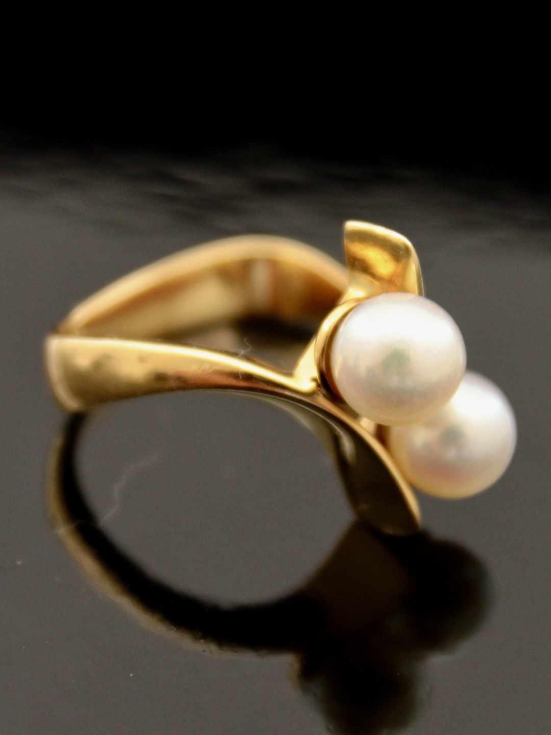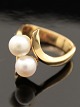 18 karat guld ring størrelse 57 med 2 ægte perler stemplet 750 GJ & W for Georg Jensen & Wendtler emne nr. 474472