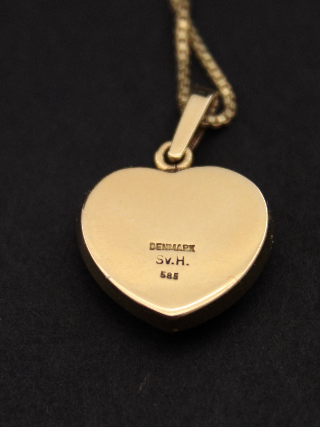 14 karat guld halskæde 42 cm. og hjerte vedhæng 1,5 x 1,6 cm. med opal emne nr. 477075