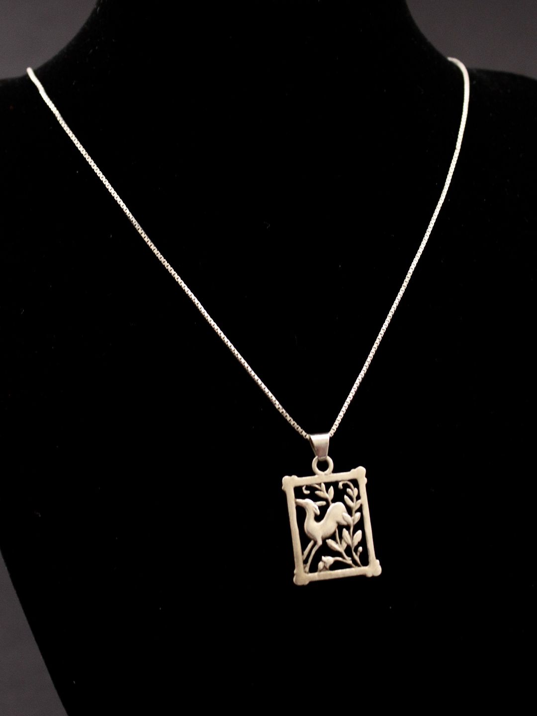 Sterling sølv halskæde 50 cm. med art deco vedhæng 2 x 2,5 cm. emne nr. 477478