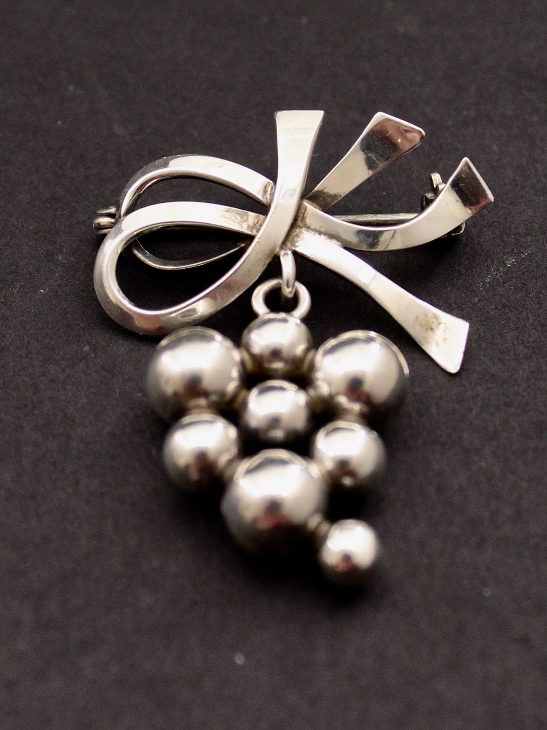 830 sølv drue broche 3,3 x 4,3 cm. fra sølvsmed John Larsen København emne nr. 477605