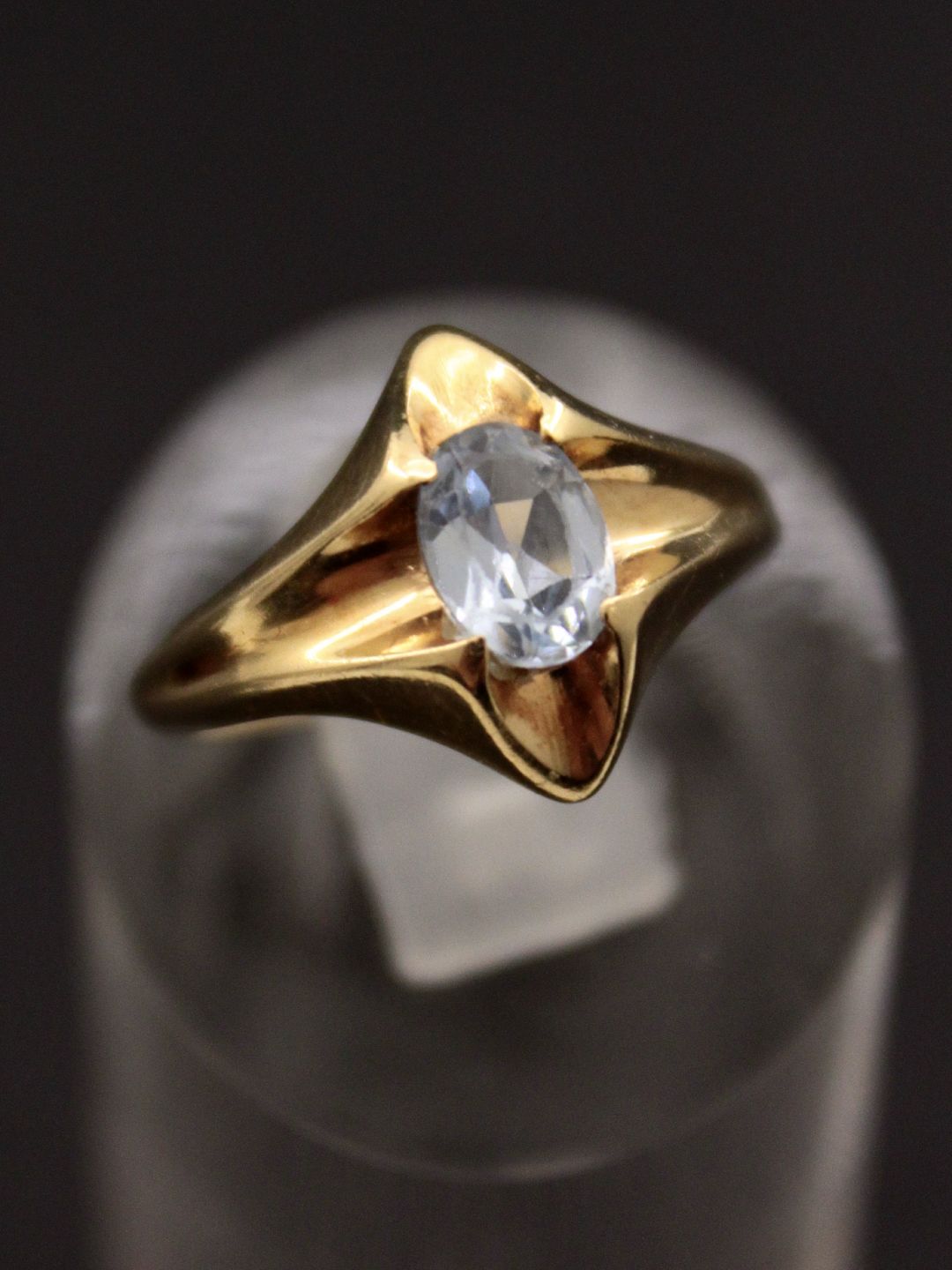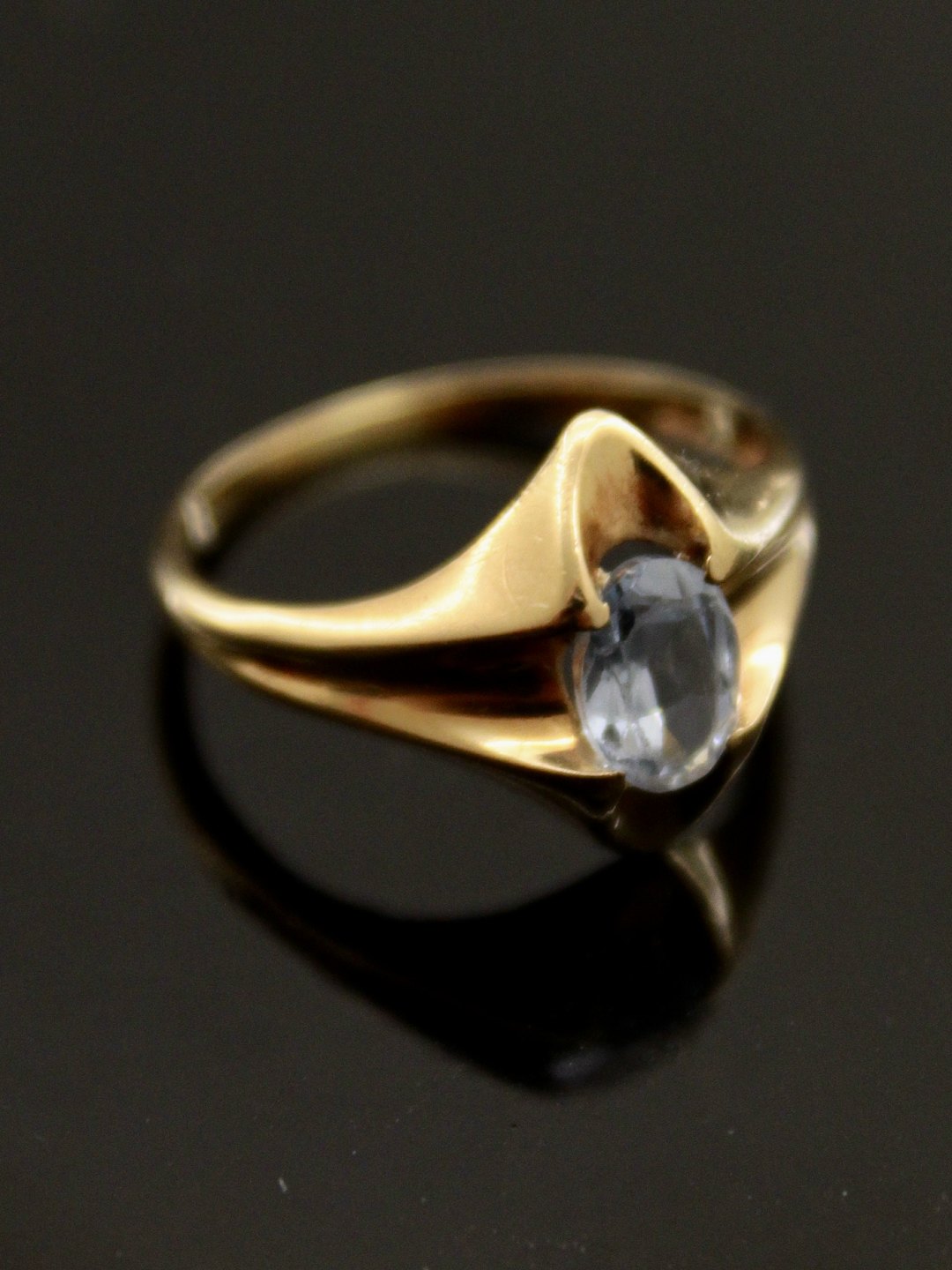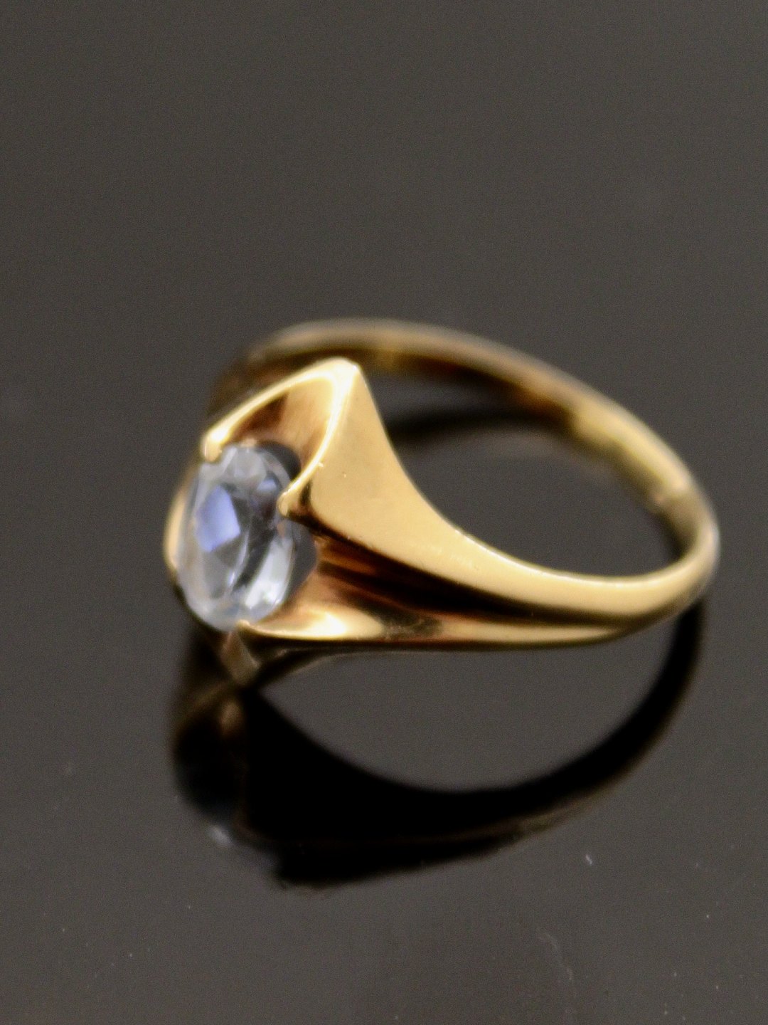 14 karat guld ring størrelse 51 med aquamarin fra guldsmed Herman Siersbøl København emne nr. 477714