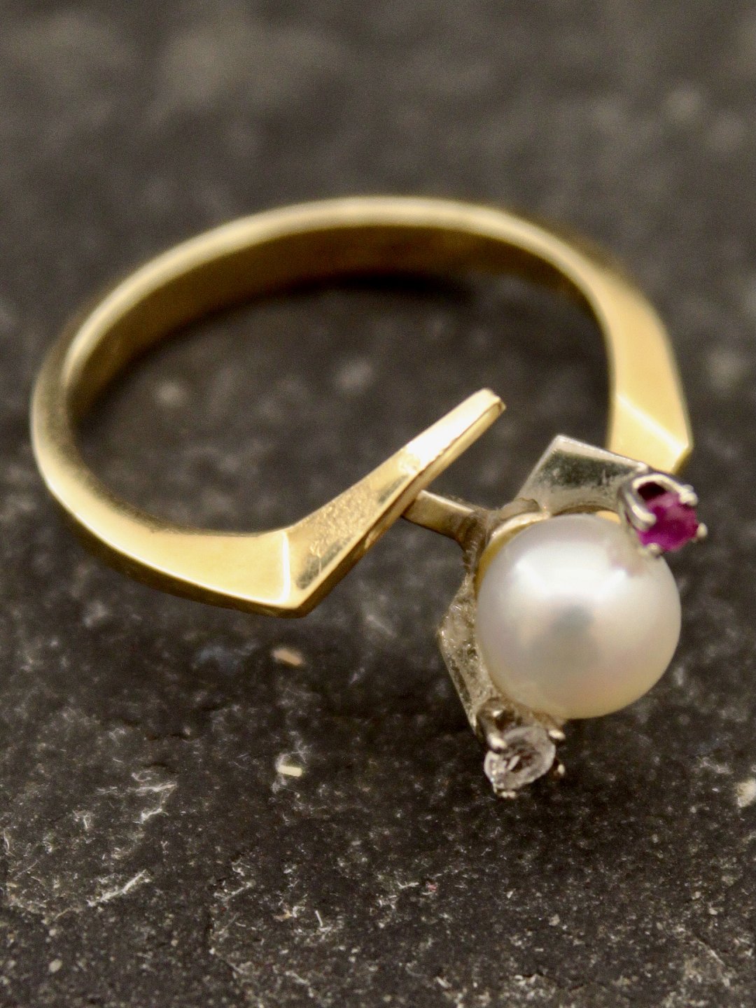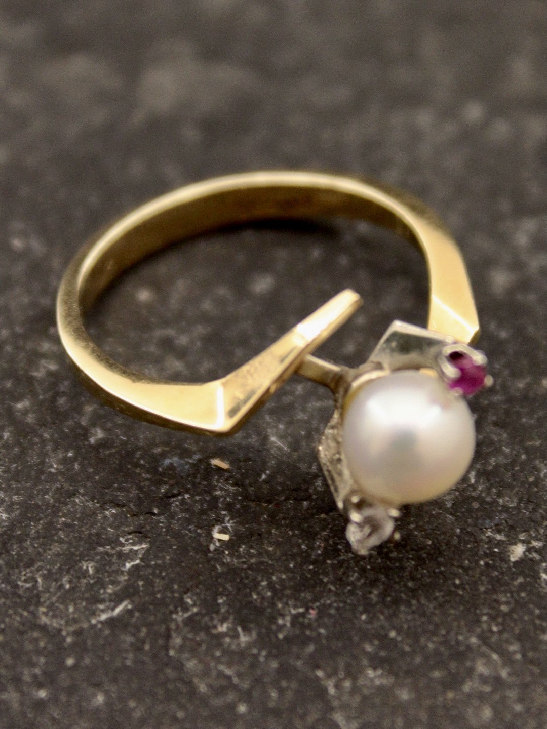 14 carat gold ring size 54 with genuine pearl ruby and zircon item no. 482558