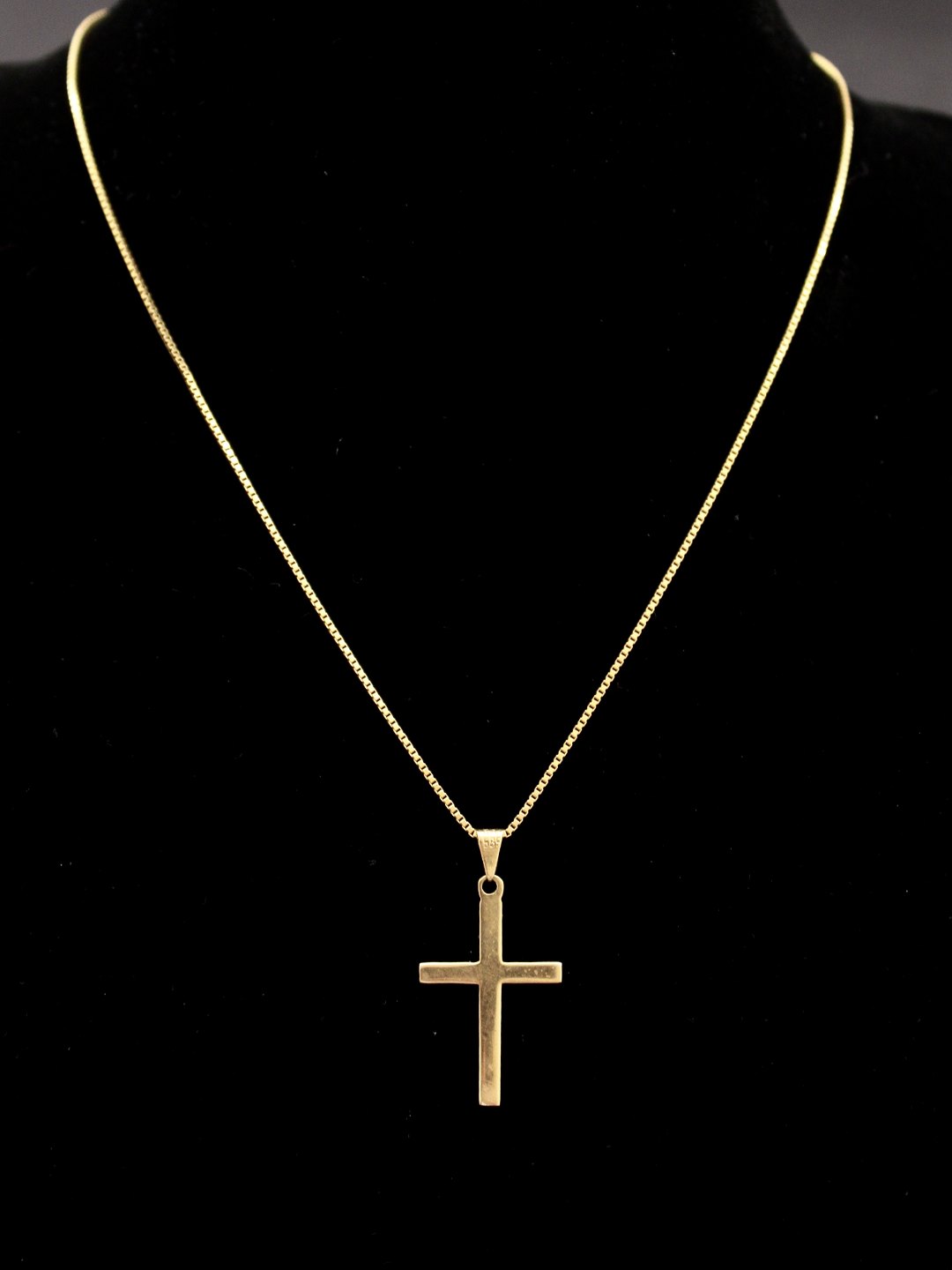 14 karat guld halskæde 36 cm. og kors 2,5 x 1,6 cm. fra juveler B Hertz København emne nr. 483826