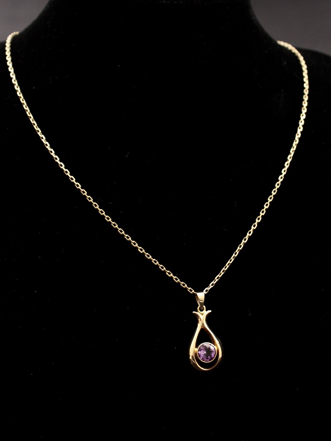 8 carat gold necklace 48 cm. with amethyst pendant 1.2 x 2.2 cm. from jeweler J. Aagaard Svendborg item no. 484175