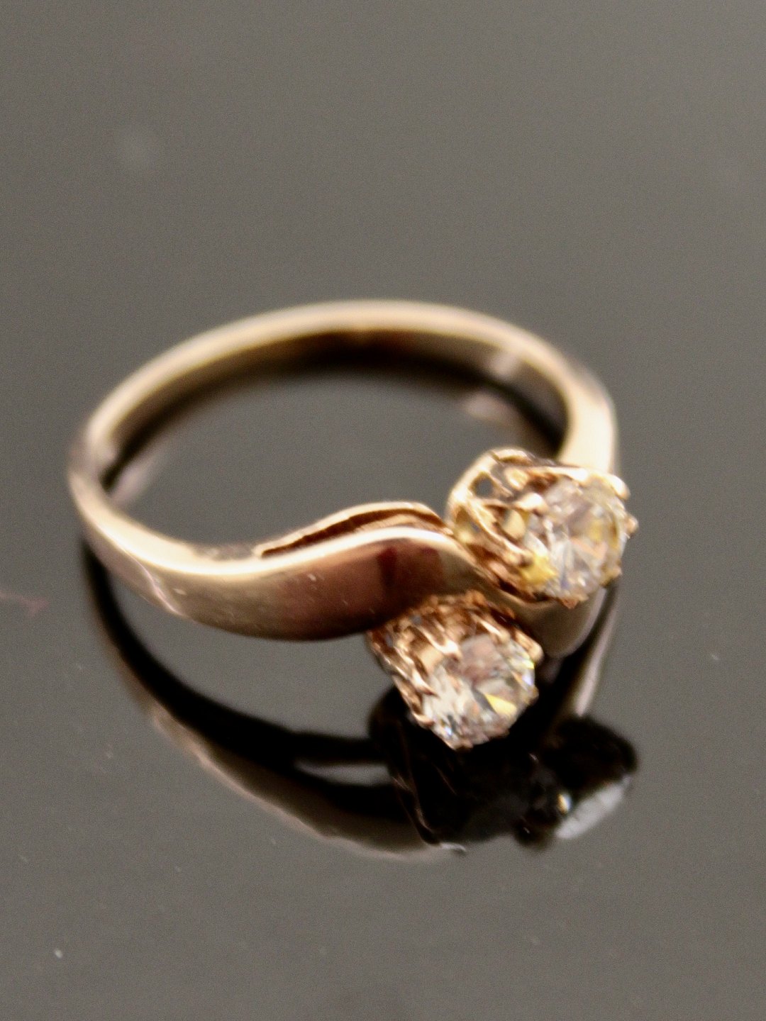 8 karat guld ring størrelse 52-53 med 2 klare stene emne nr. 485583