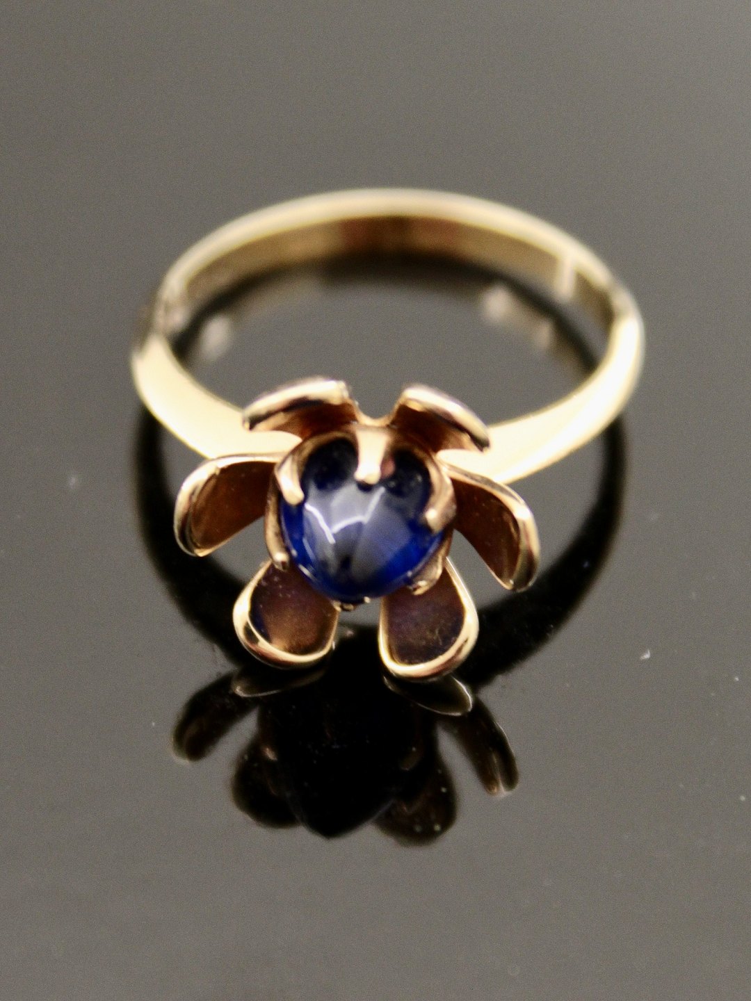 14 karat guld ring størrelse 55-56 med safir fra juveler Herman Siersbøl København emne nr.485611 lager:1