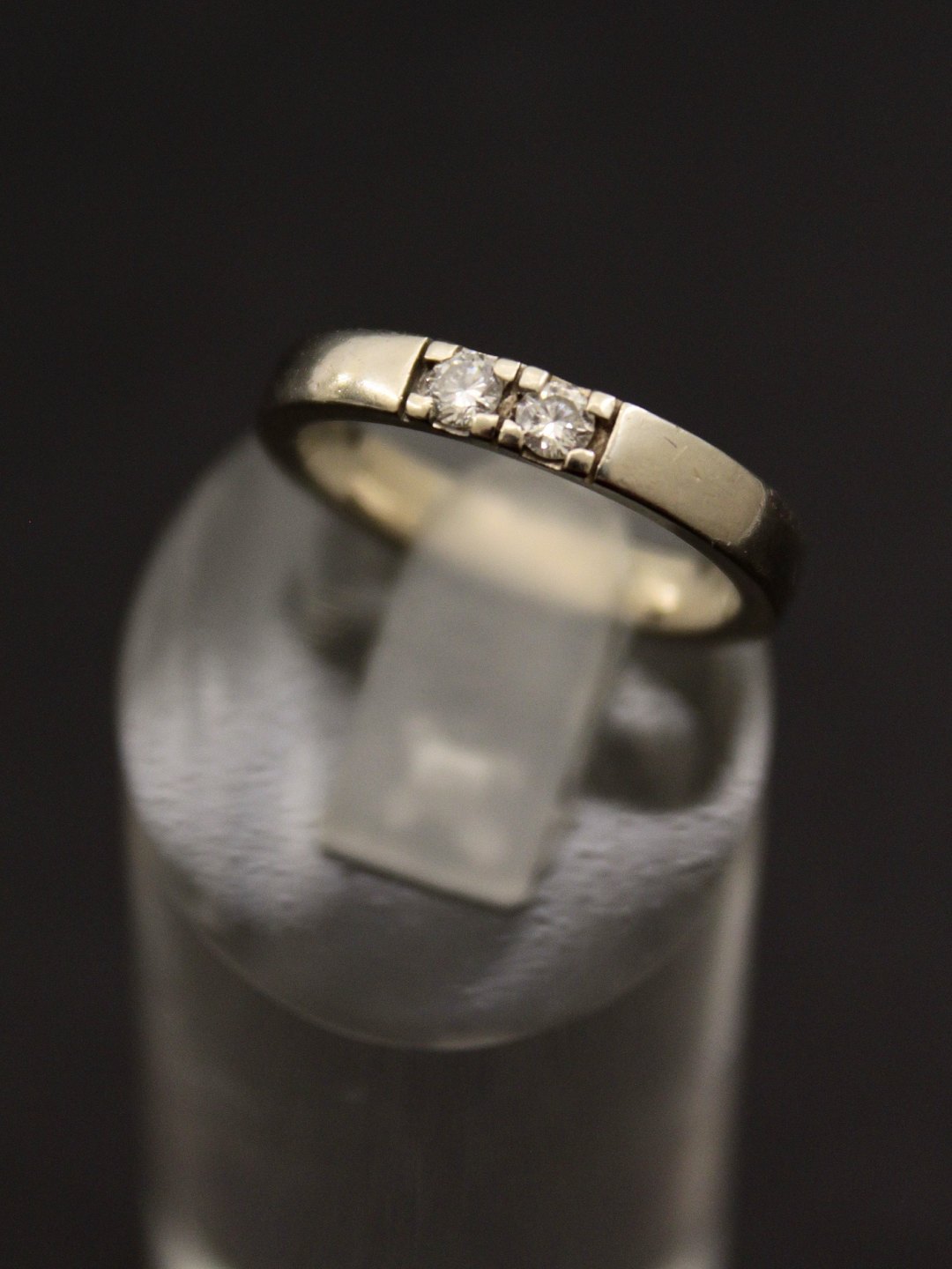 14 karat hvid guld ring størrelse 52 med 2 diamanter a' ca. 0,10 carat fra guldsmed Bræmer Jensen Randers emne nr. 485873