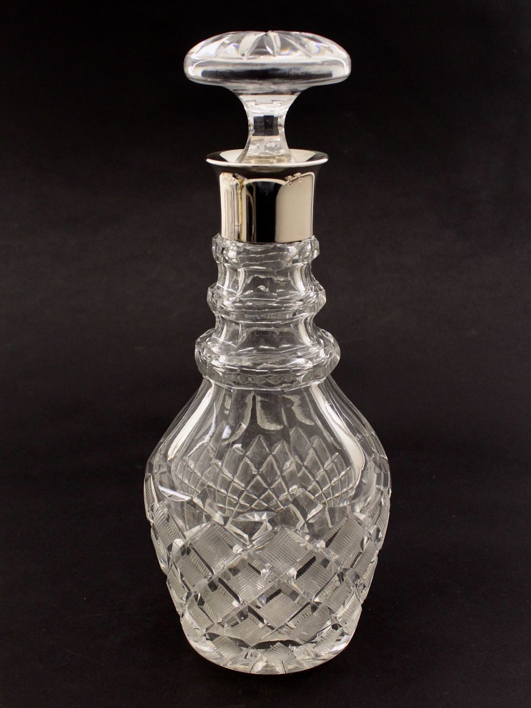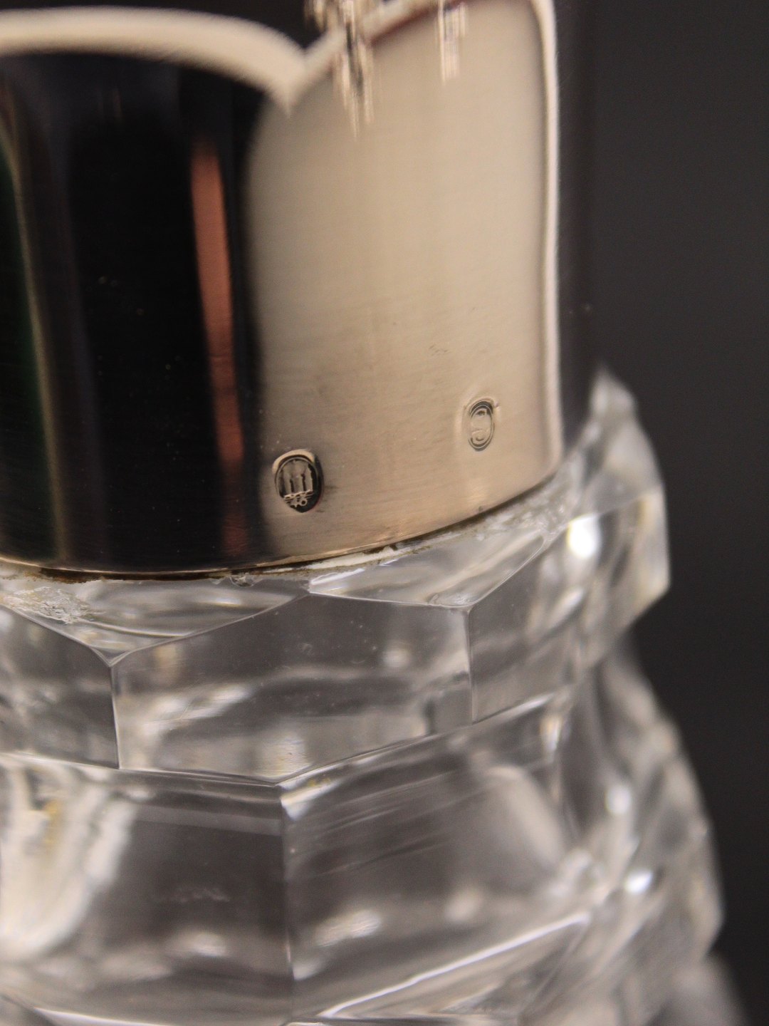 Krystal sleben karaffel 32 cm. med tretårnet sølv montering emne nr. 490388