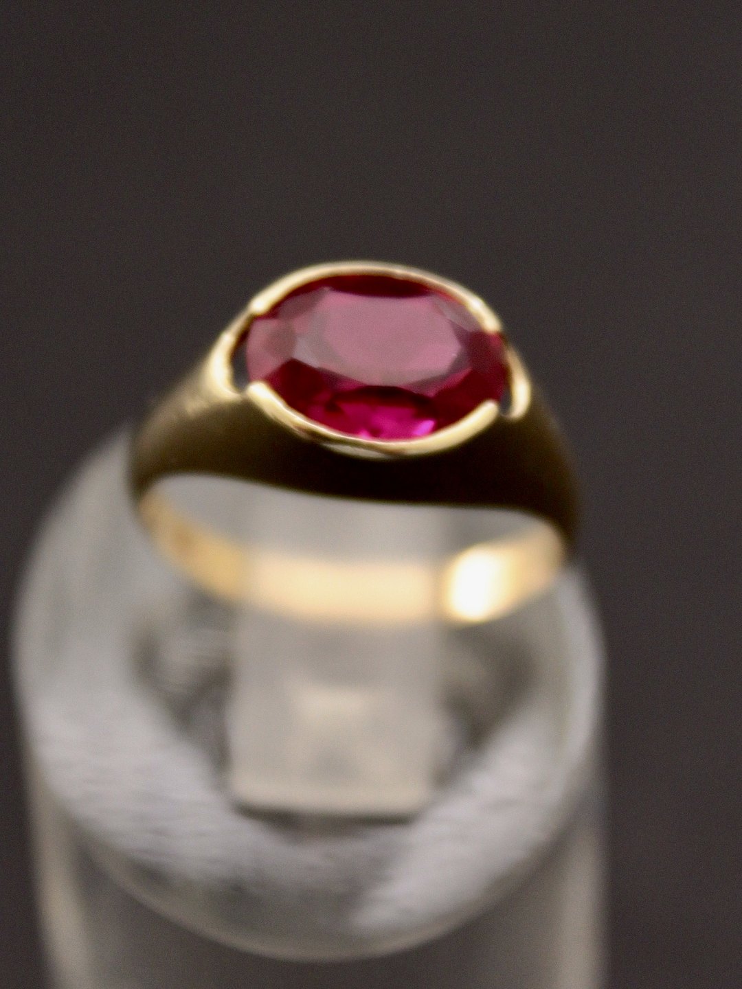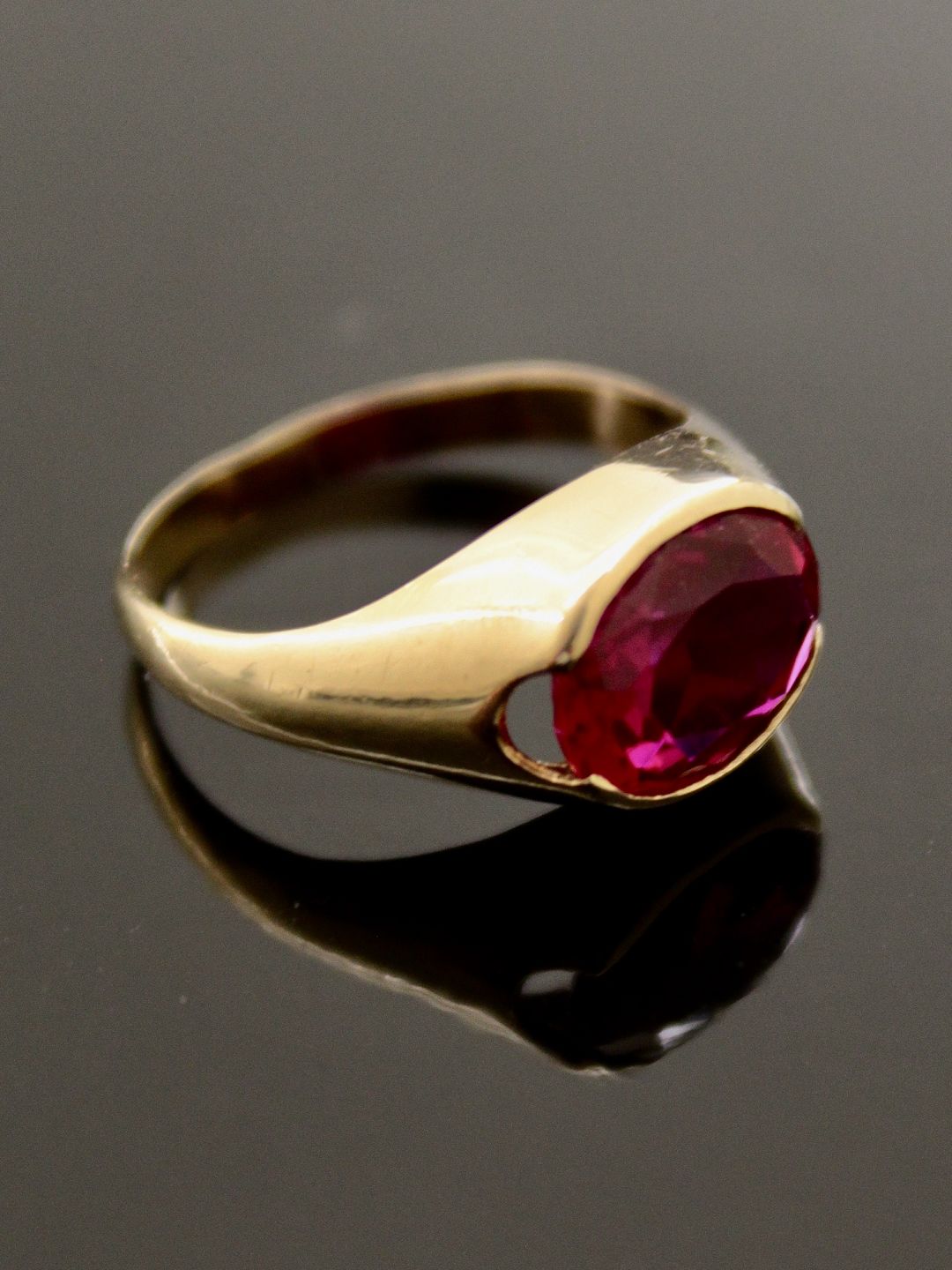 8 karat guld ring størrelse 52 med rød spinel fra juveler Herman Siersbøl København emne nr. 493985