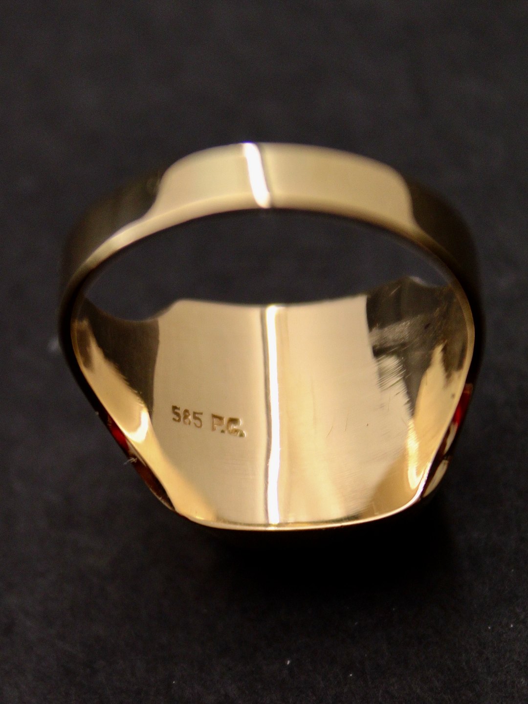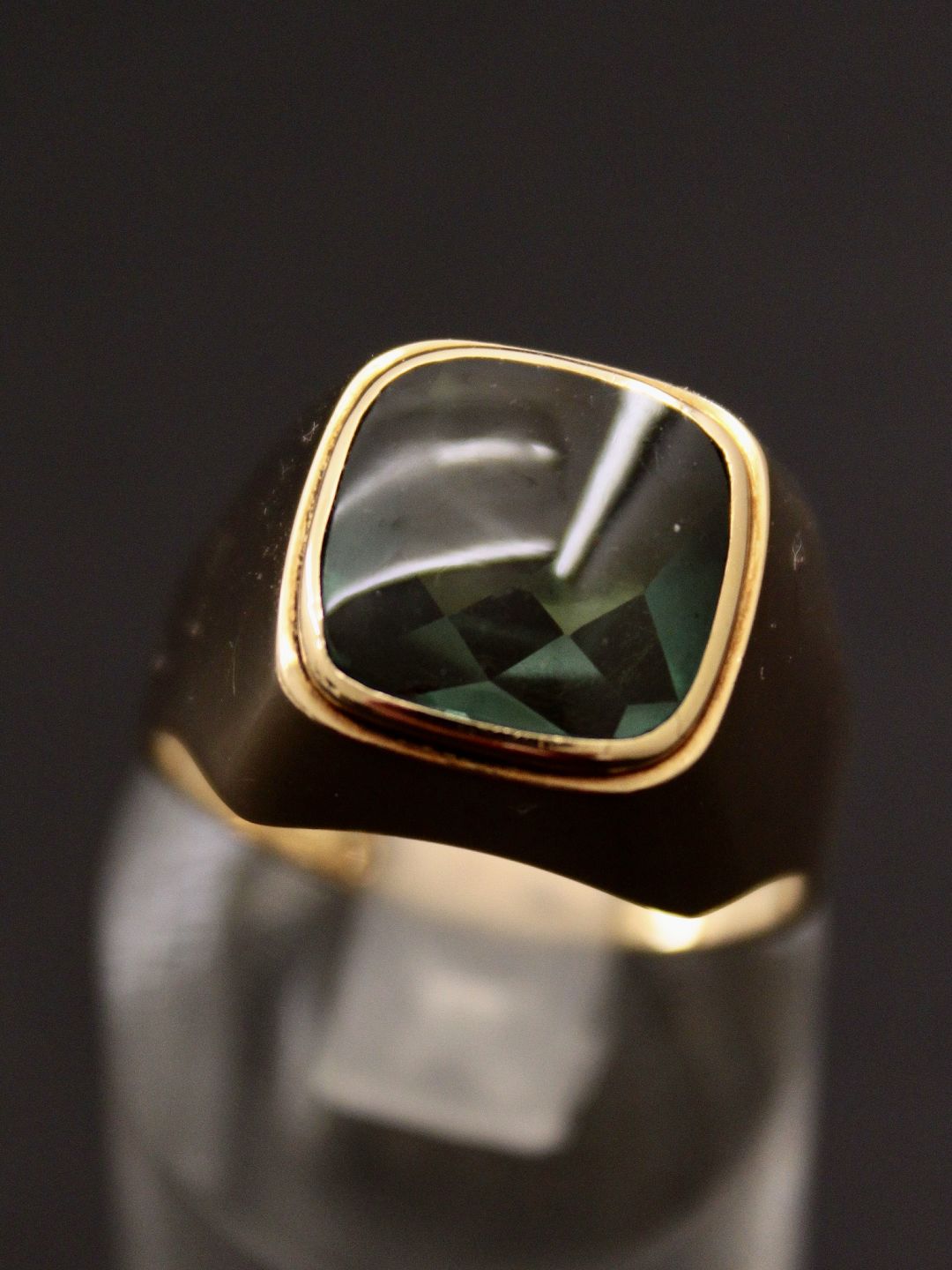 14 carat gold ring size 66 with green gemstone weight 9.3 grams from jewels Peter Christensen Odense item no. 499290