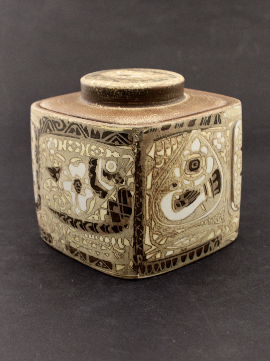 Brown Square lid jar 13 x 13 cm Royal Copenhagen Aluminia Baca faience item no. 501190