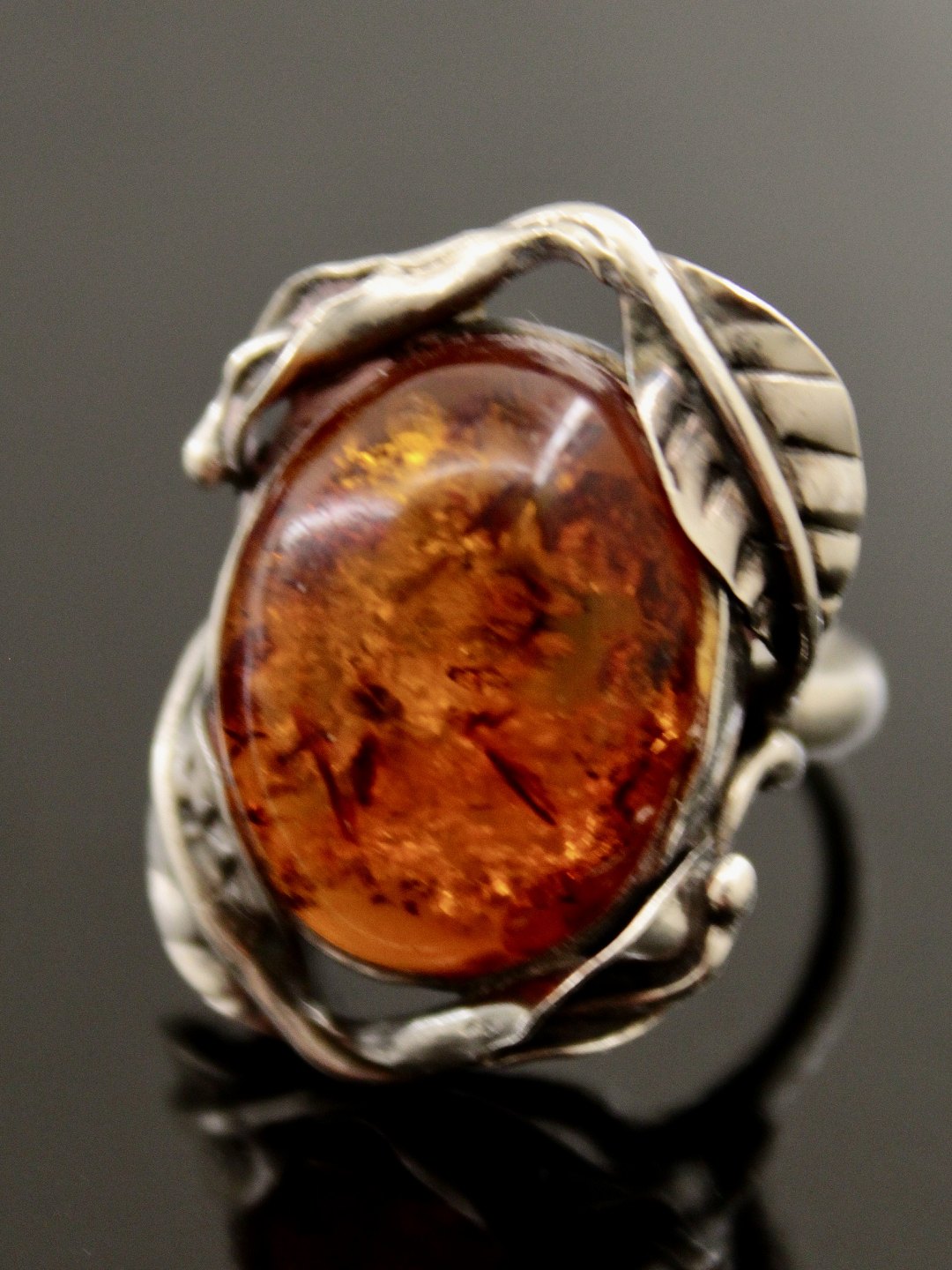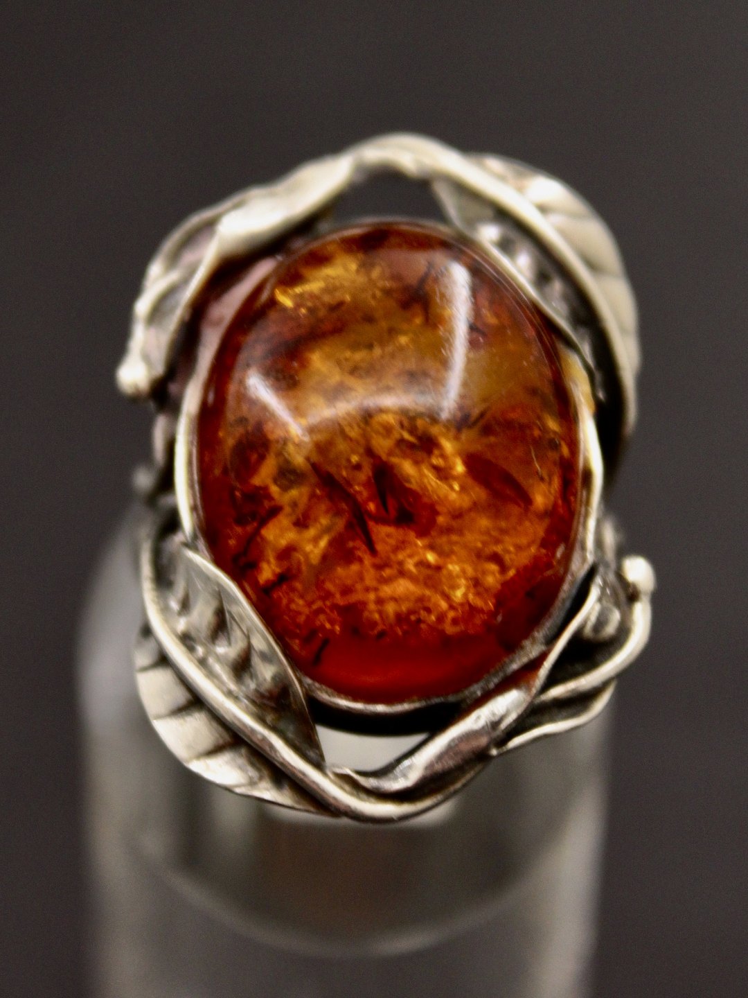 Sterling silver ring size 57-58 with cabochon cut amber 2.1 x 1.7 cm. item no. 502694
