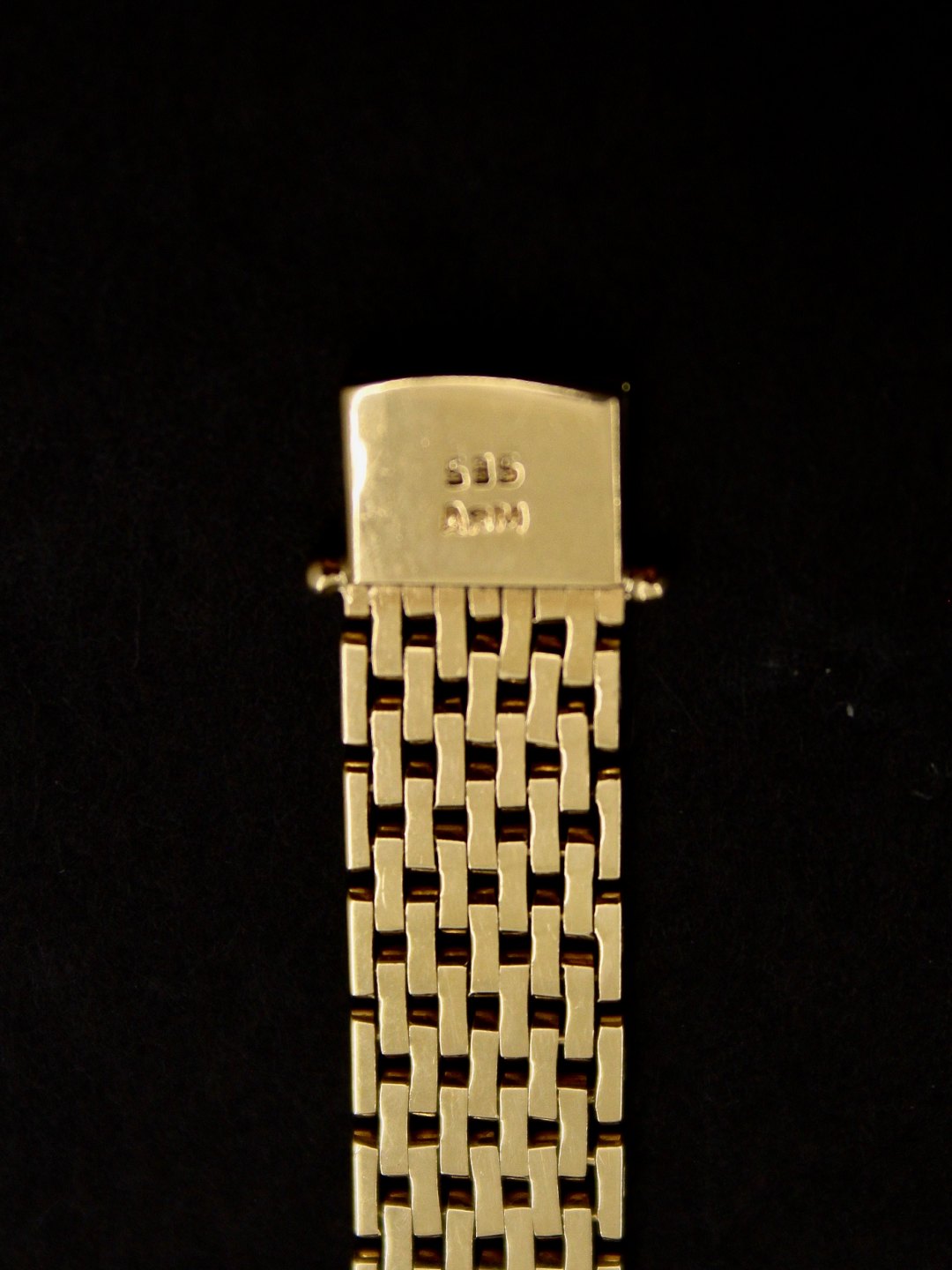 14 carat gold brick bracelet 18.5 cm. B. 0.95 cm. weight 22.5 grams goldsmith Aage Munksgaard Faborg item no. 504749