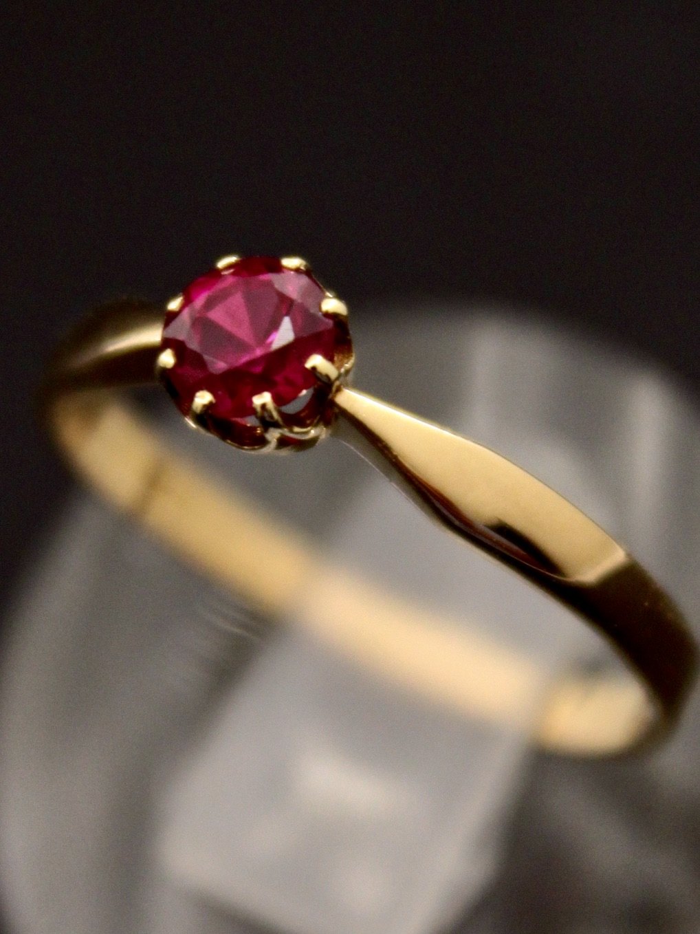 Solitaire/prinsesse ring 14 karat guld størrelse 57-58 med rød spinel emne nr. 506598