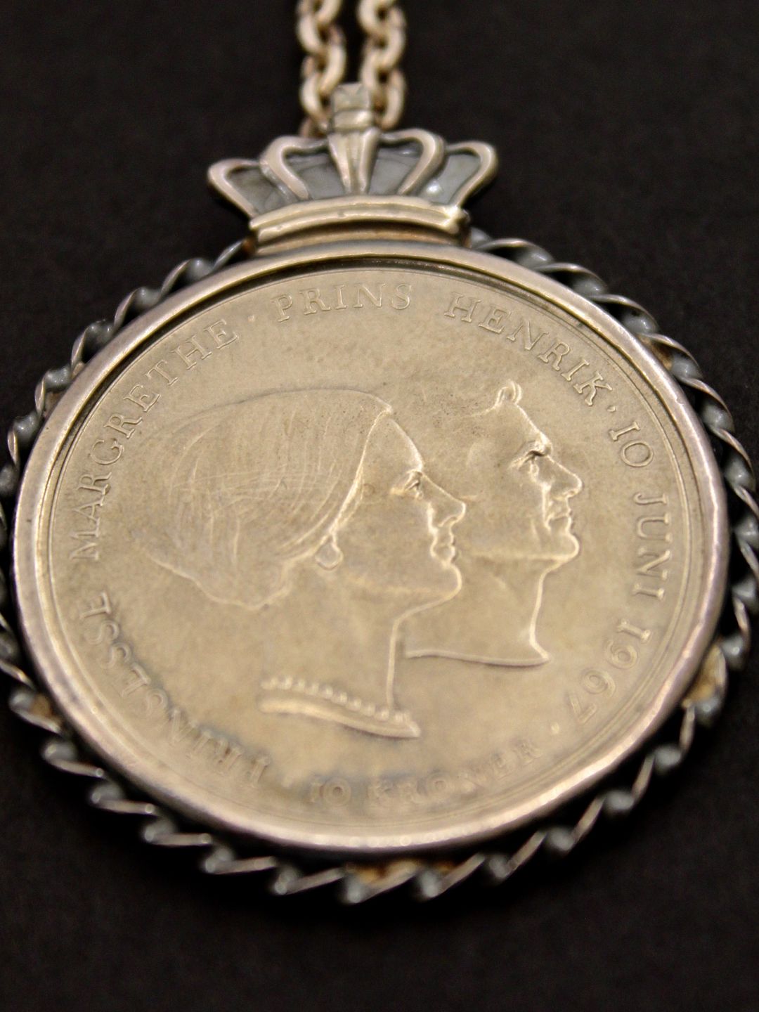 Jubilæums mønt i sølv montering med 830s kæde 80 cm. emne nr. 508045