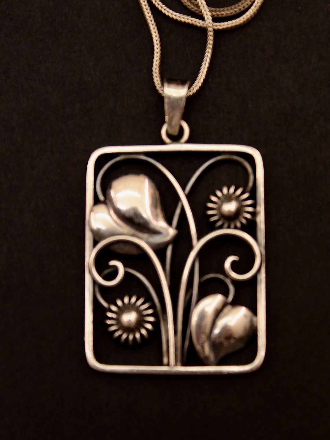 Art deco vedhæng 3,3 x 4,2 cm. fra L. Grün København med sølv kæde 68 cm. emne nr. 508667