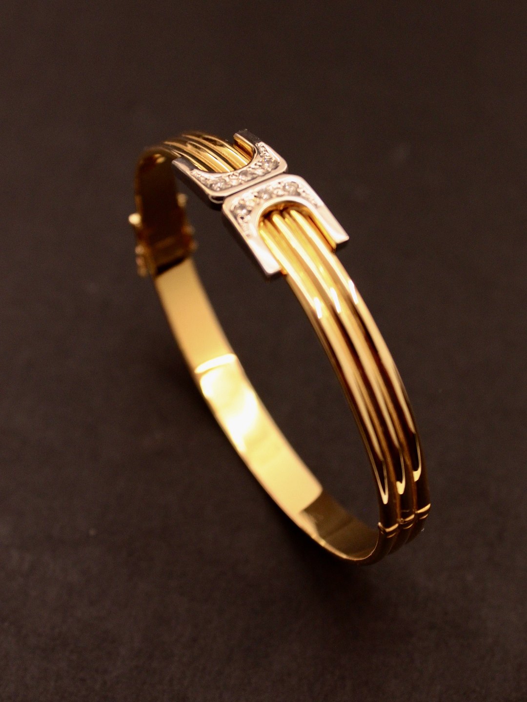 14 karat guld armring 6,2 x 5,5 cm. B. 0,7 cm. med diamanter fra Margit Collection Nærum emne nr. 508670