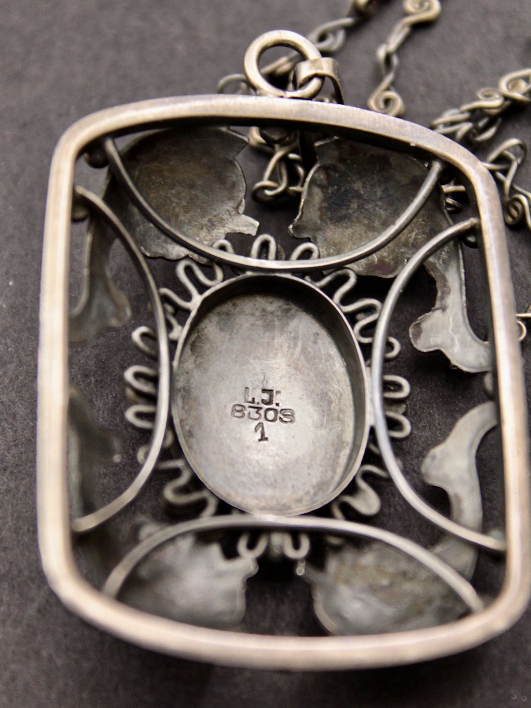 Art Deco browned 830 silver pendant 3.5 x 4.5 cm. and chain 50 cm. from silversmith Laurits Jensen Copenhagen item no. 509295
