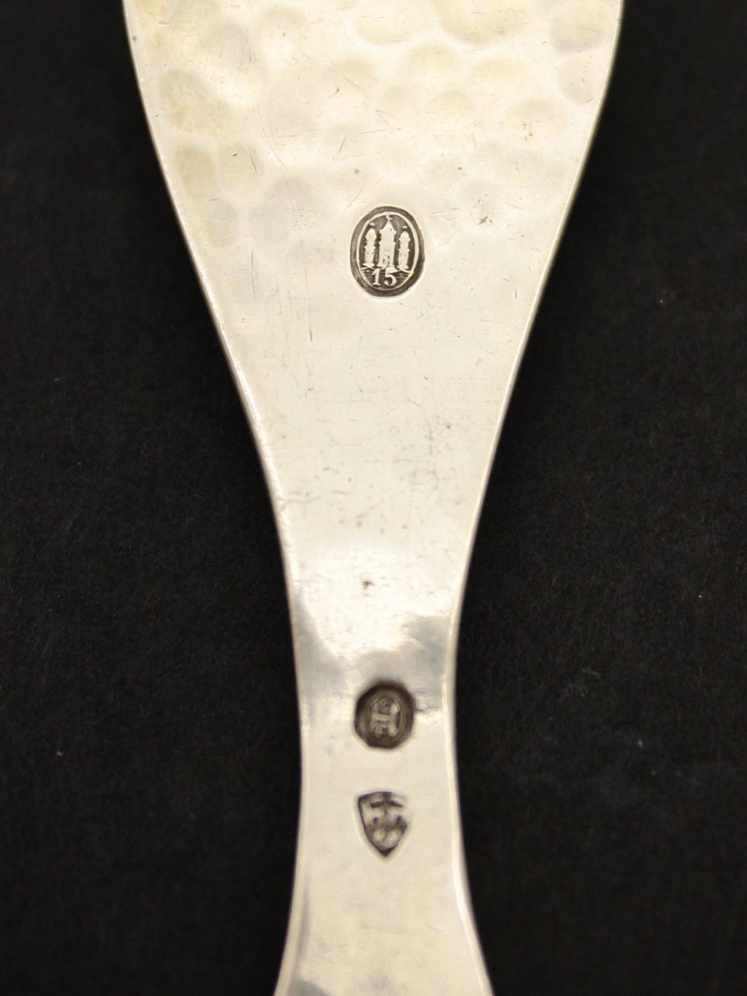 Art nouveau lightly hammered silver spoon 17.5 cm. with amber subject no. 509379