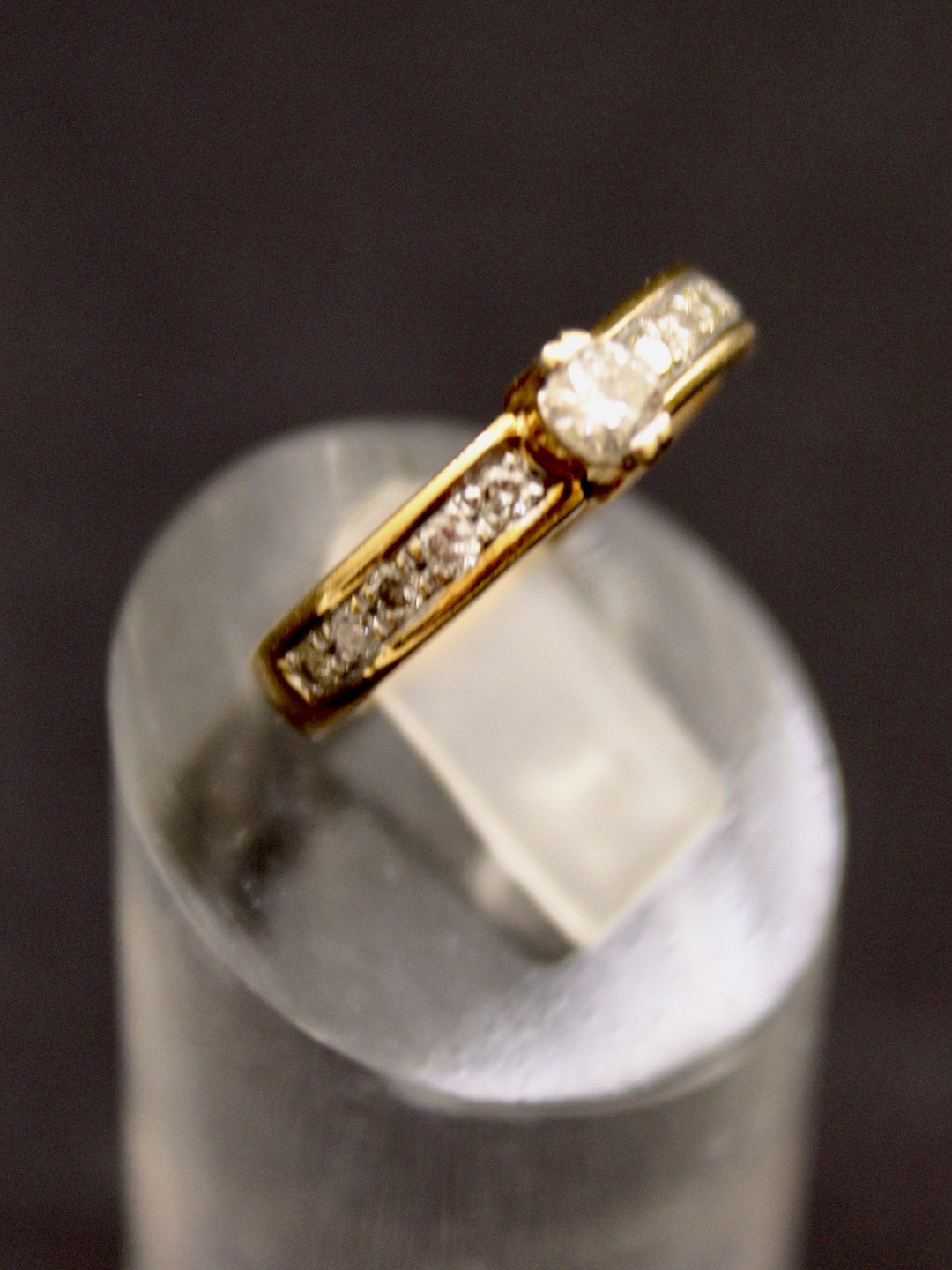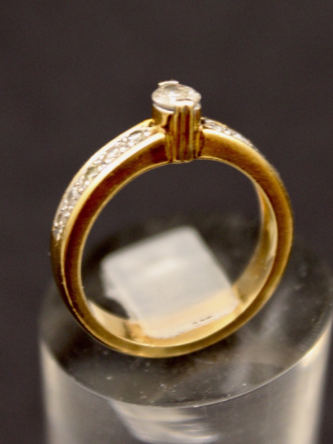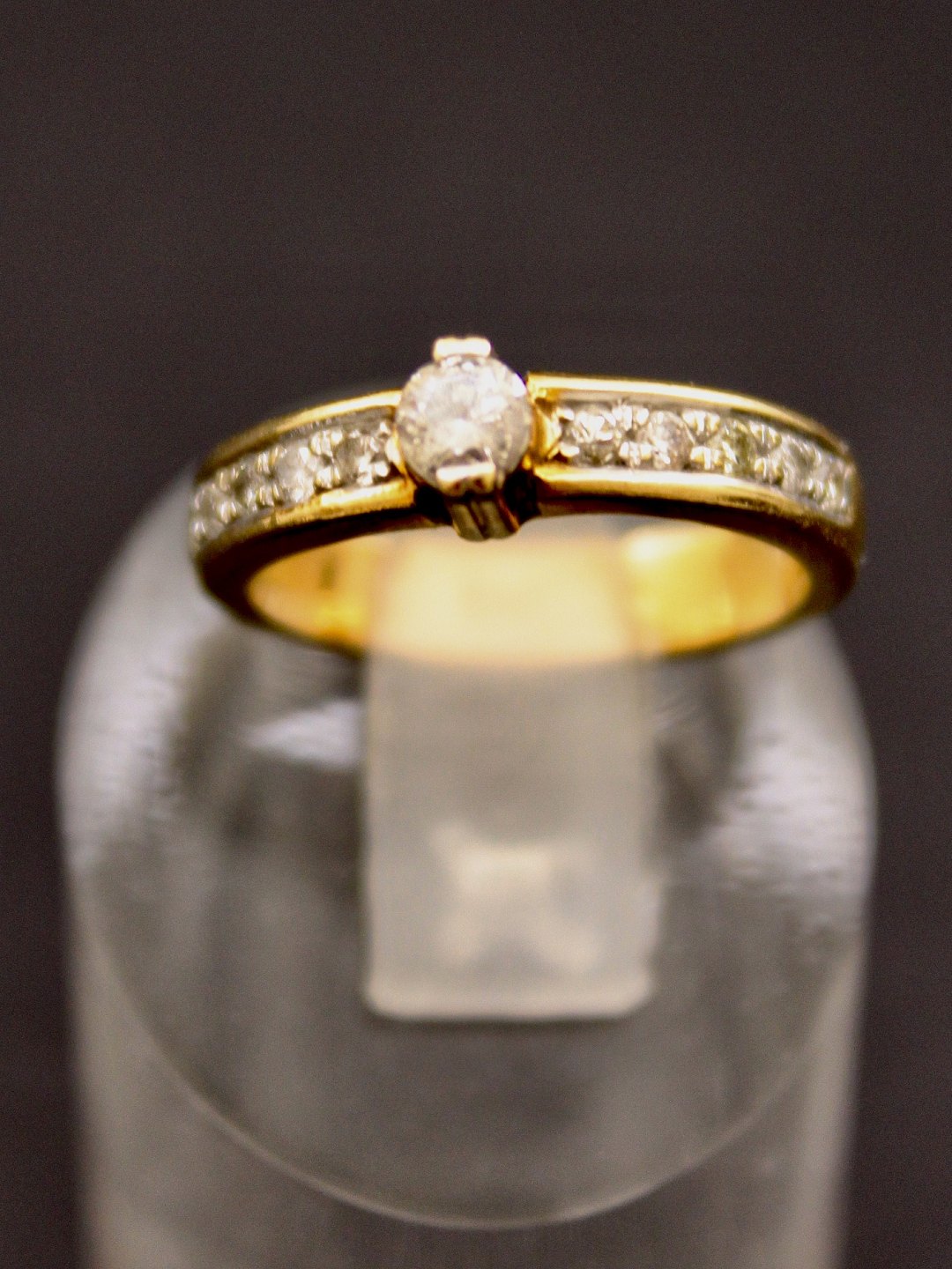 14 karat guld ring størrelse 50 med diamant ca. 0,20 carat og adskillige små diamanter emne nr. 509747