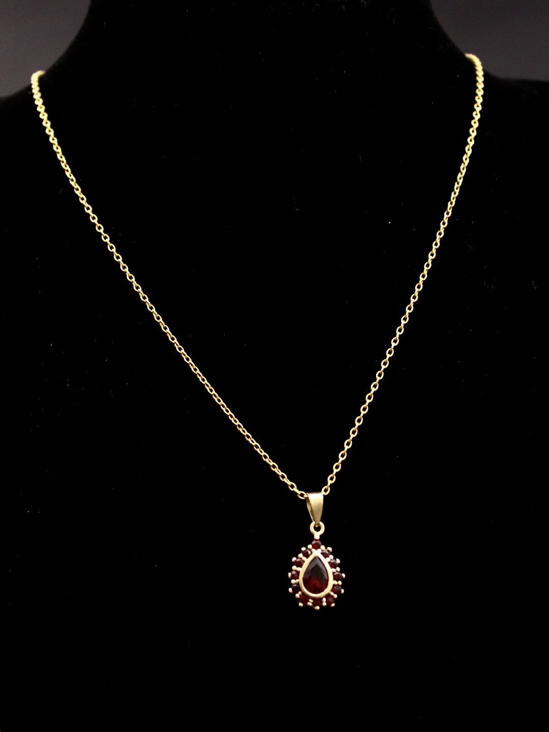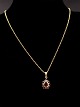 14 karat guld dråbe vedhæng 1,7 x 1 cm. med granater og kæde 48 cm. emne nr. 514068