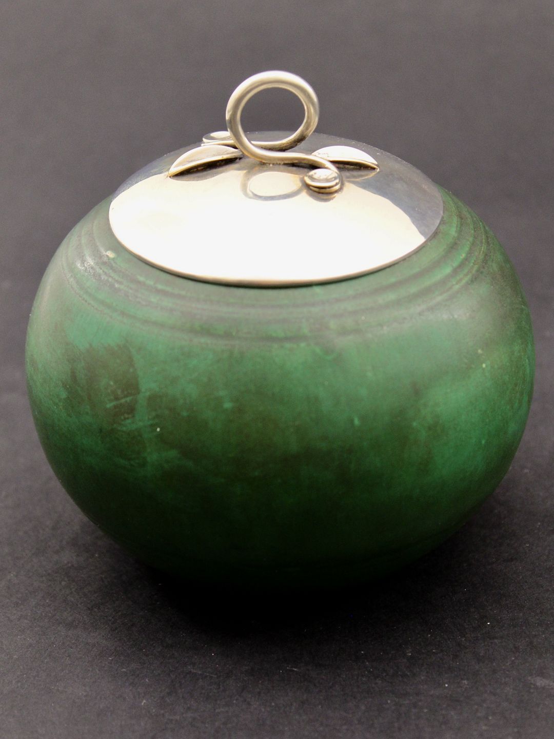 Art deco ball round ceramic jar 11 cm. with silver lid from silversmith Viggo Neuhammer Skagen item no. 515355