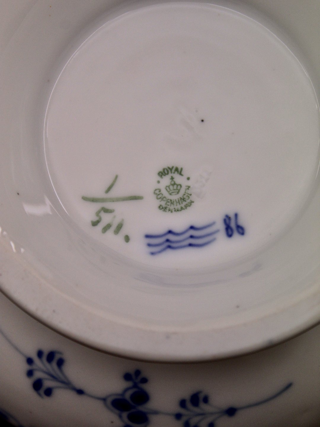 Royal Copenhagen blue fluted half-lace bowl on foot. 1/511 1.sorting subject no. 517186