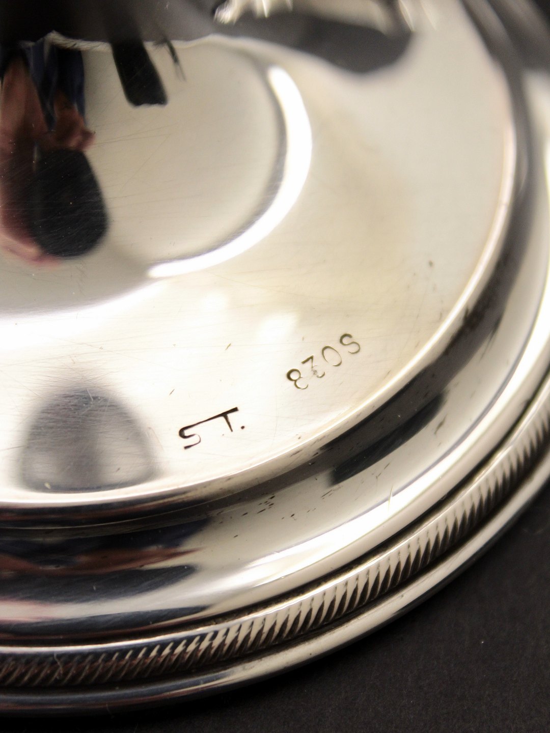 830 sølv lysestager 15,5 cm. lille bule på stamme fra Svend Toxværd København emne nr. 518681