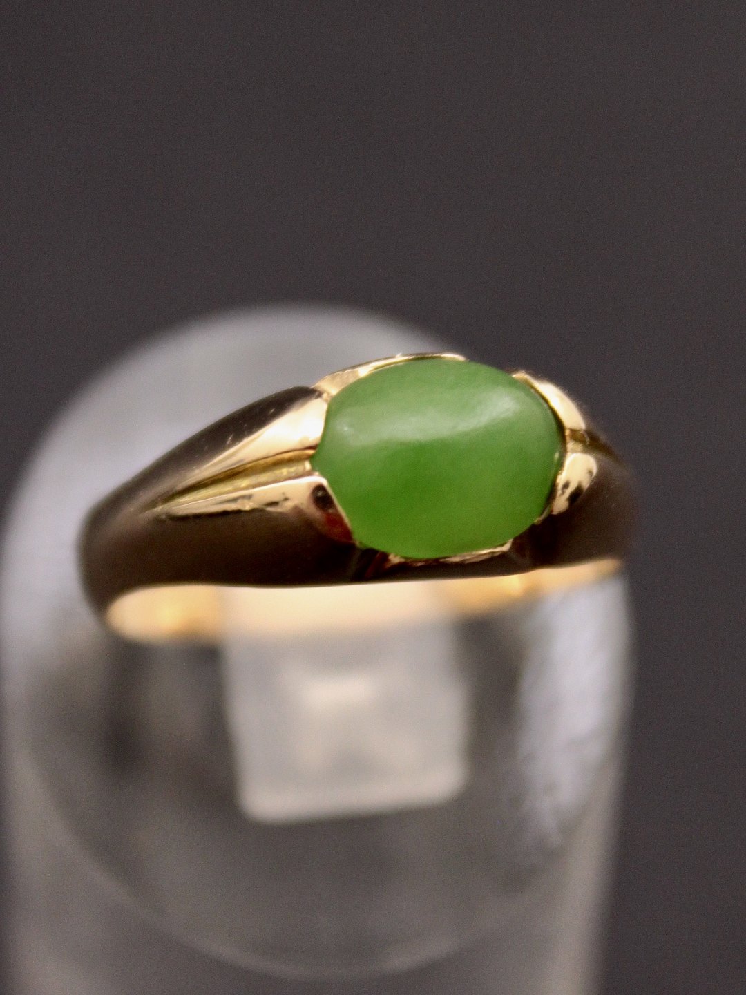 14 karat guld ring størrelse 58 med jade fra guldsmed Jørgen Larsen København emne nr. 521548