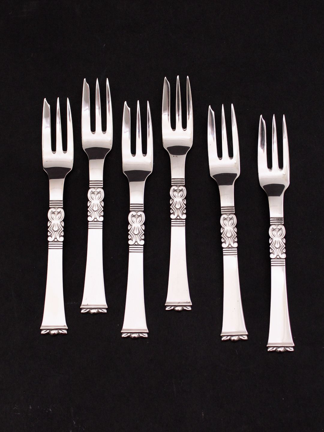 Rigsmønstret kagegafler 13,5 tretårnet sølv sæt på 6 emne nr. 523622