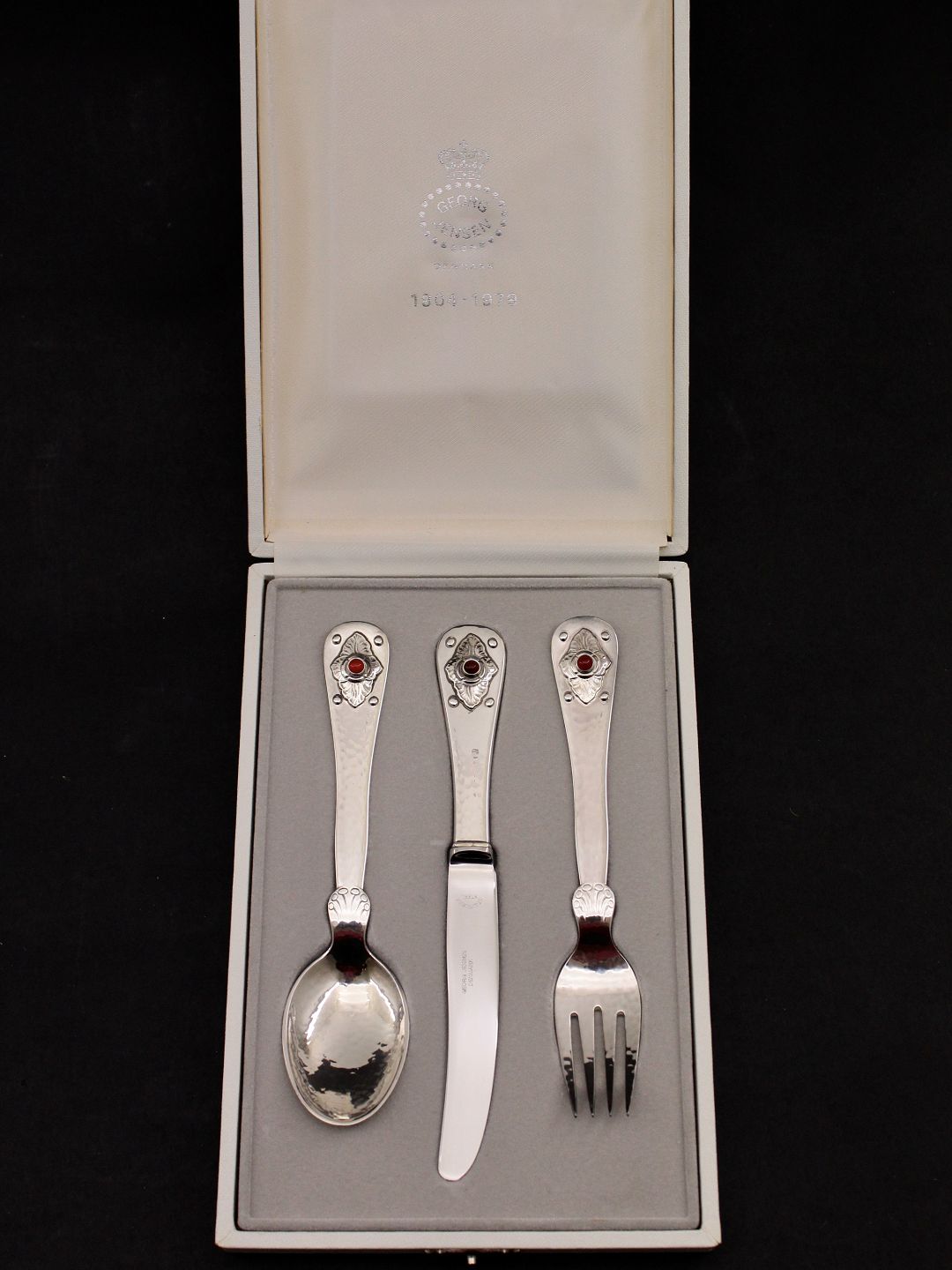 Georg Jensen barne jubilæums bestik 1904-1979 sterling sølv med rav flot som nyt emne nr. 523912