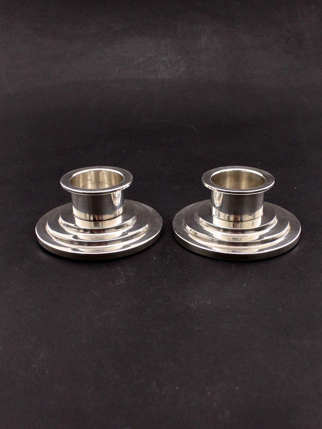 Art deco tretårnet sølv blok lysestager H. 5 cm. fod 10,5 cm. emne nr. 524216