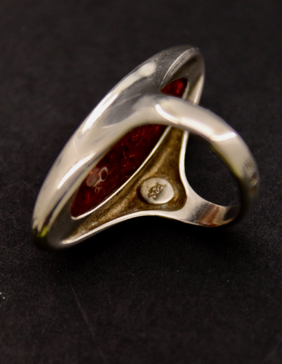 Sterling silver ring size 54 with amber 1 x 3 cm. Item No. 526094