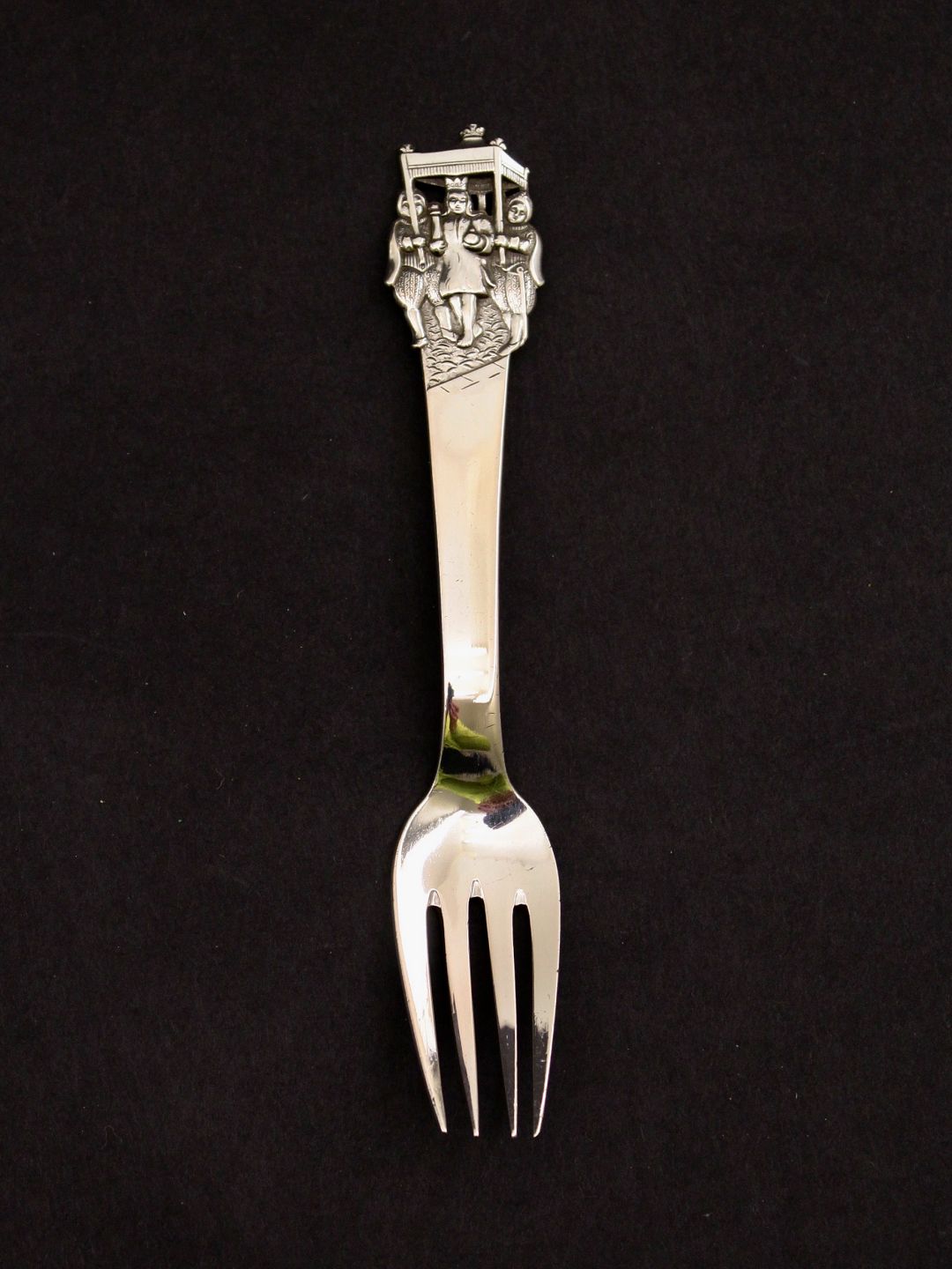 H C Andersen barne gaffel 14,5 cm. "Kejserens Nye Klæder" tretårnet sølv flot ingen graveringer emne nr. 526161
