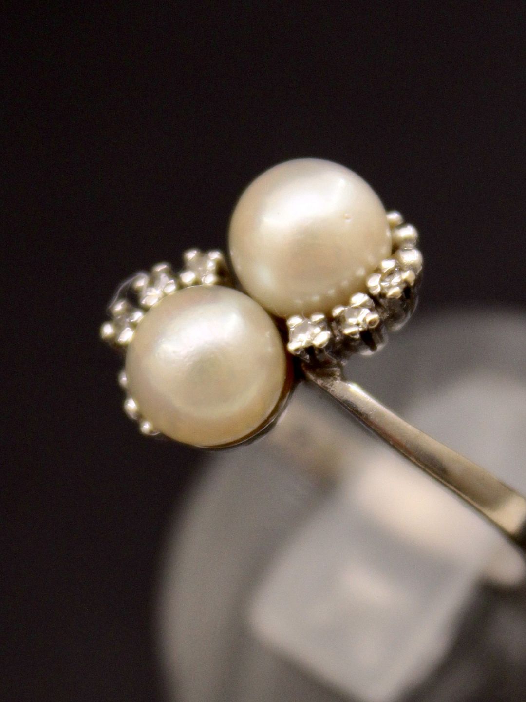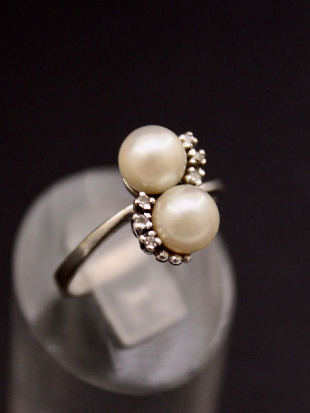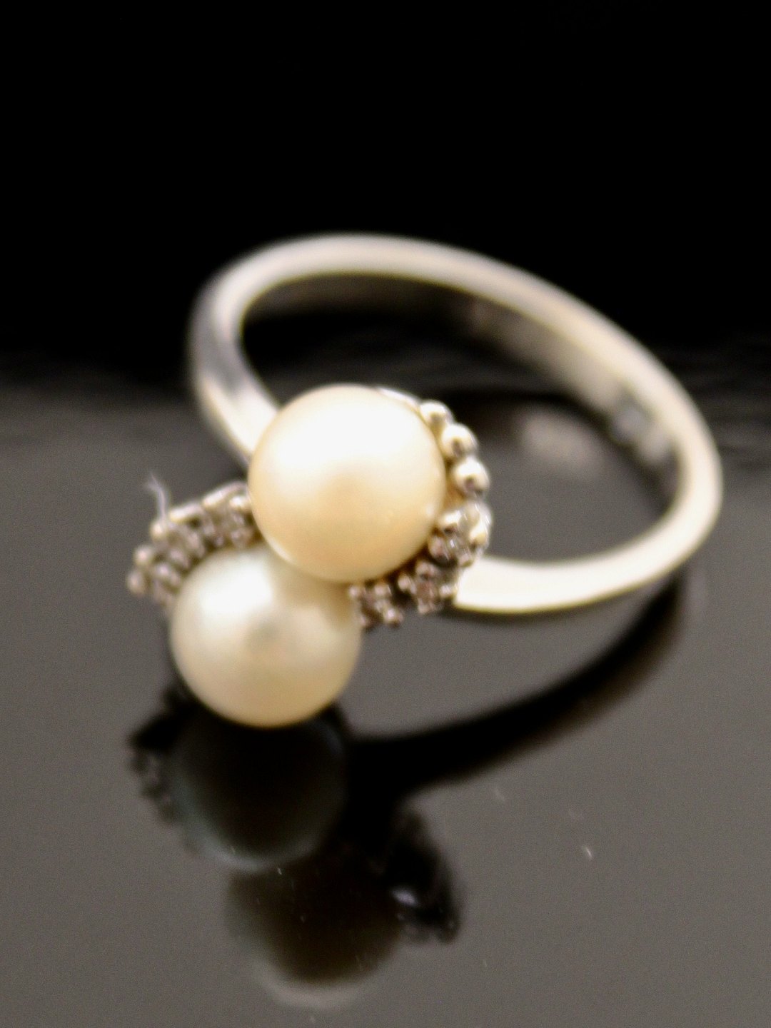14 carat white gold ring size 56 with 6 diamonds and 2 genuine pearls from goldsmith Volmer and Bahner Copenhagen item no. 526614