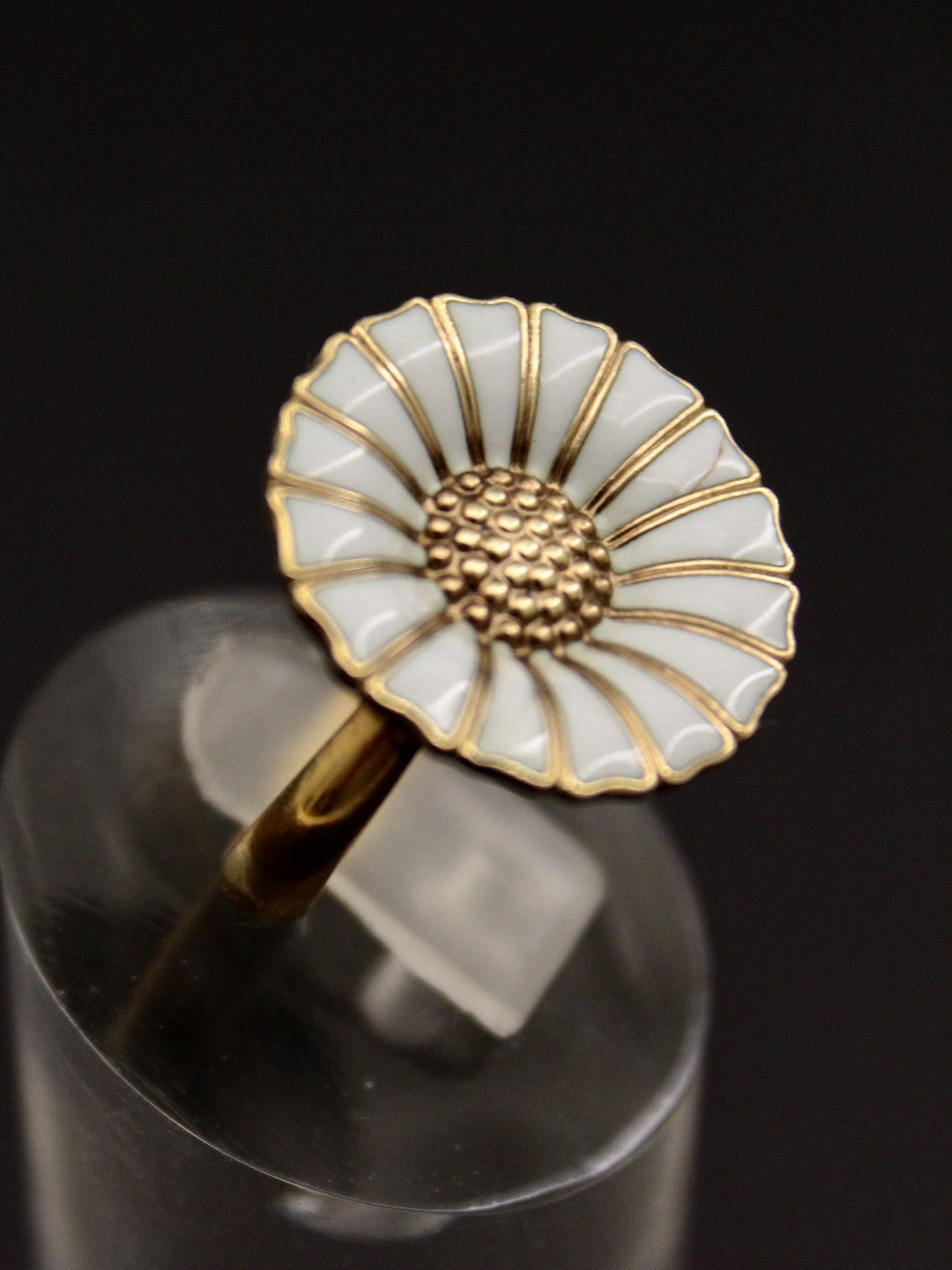 Georg Jensen Sterling silver daisy ring with enamel size 49 wear marks item no. 530695