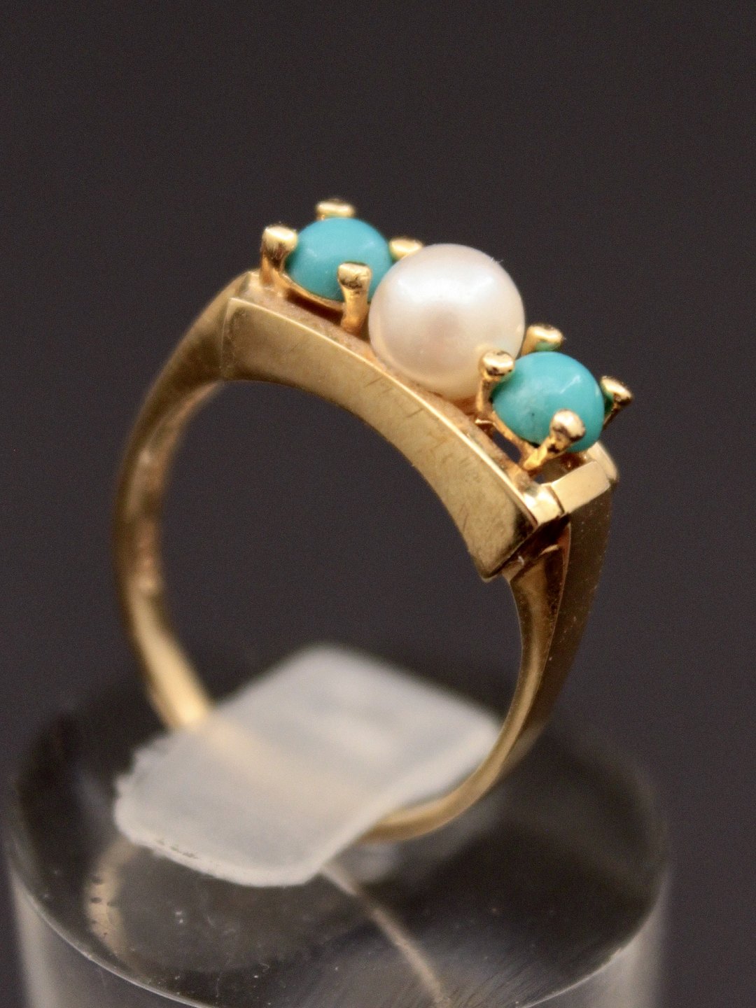 14 karat guld ring størrelse 53 med ægte perle og turkiser emne nr. 533435