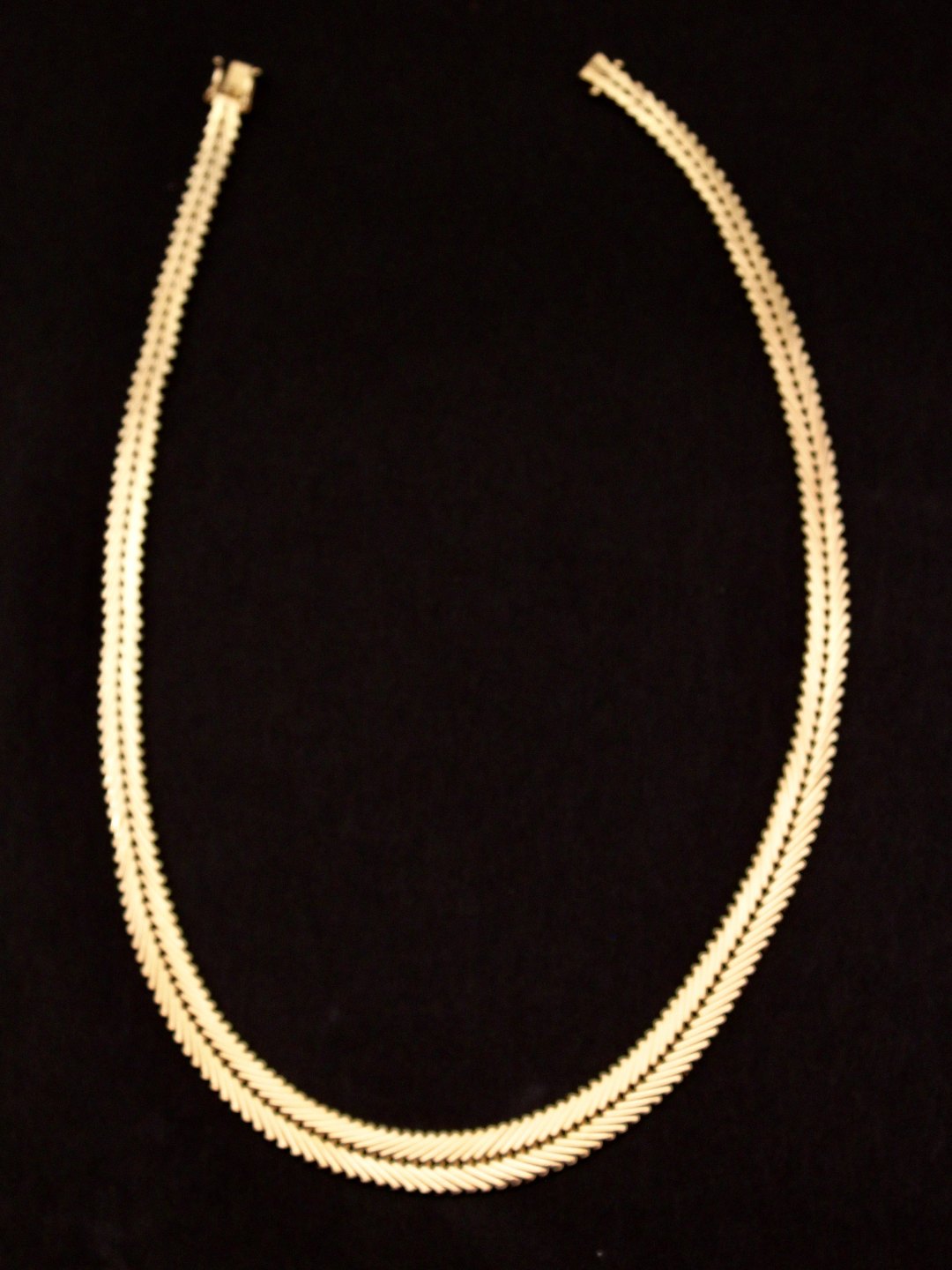 14 karat guld Geneve halskæde 40 cm. B. 0,5-1 cm. 31,2 gram fra guldsmed Arne Backhausen Skovlunde emne nr. 533548