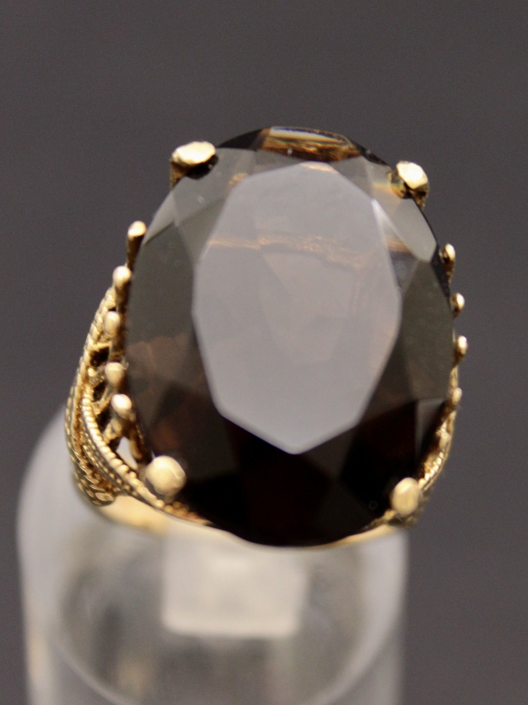 14 karat guld ring størrelse 58 vægt 14,7 gram med røgtopas 2,4 x 1,8 cm. emne nr. 534449