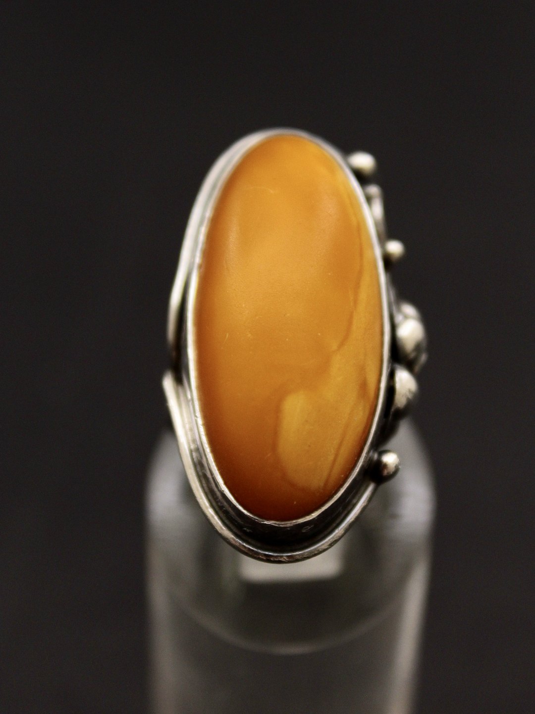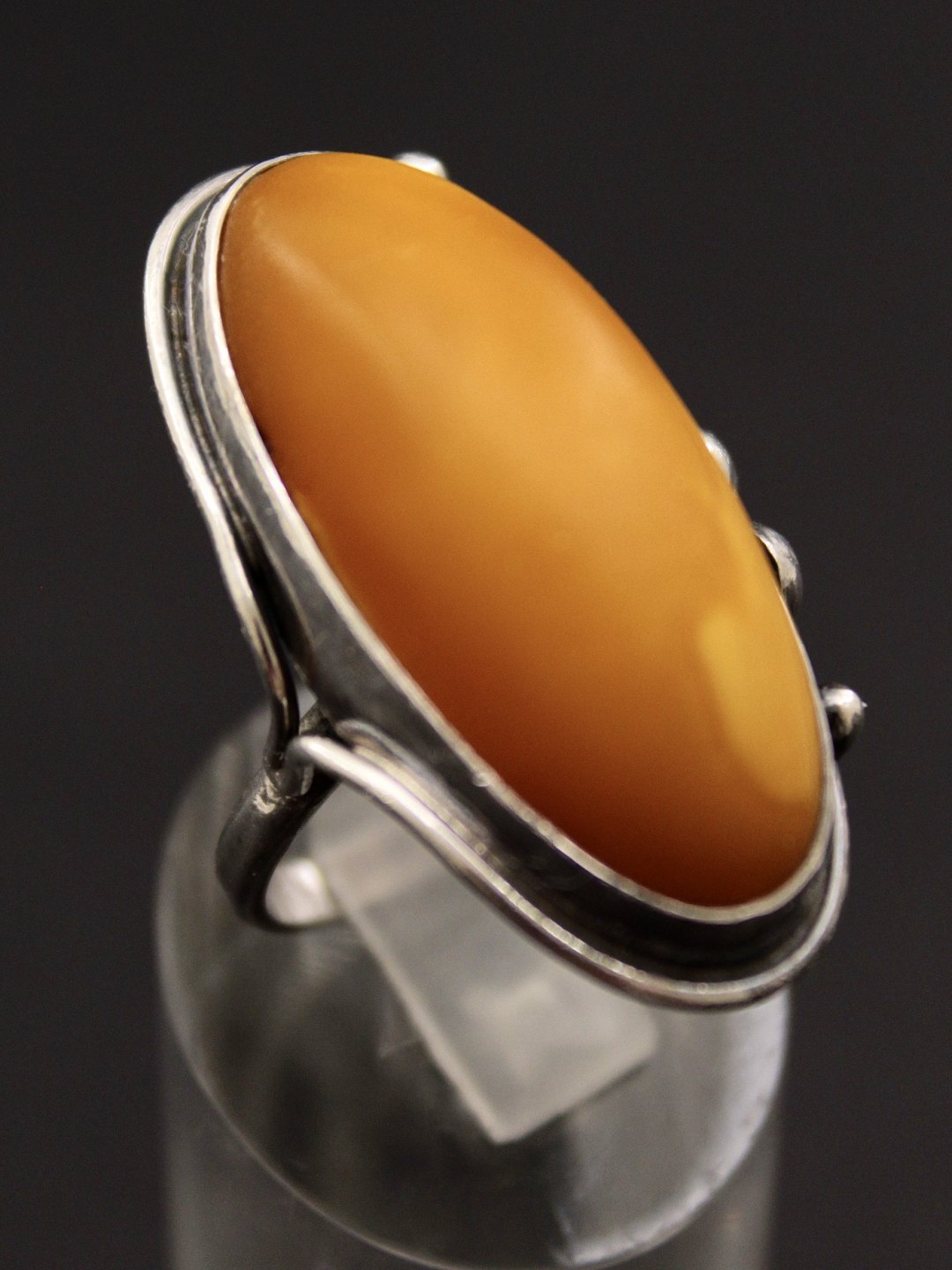 Sterling sølv ring størrelse 52-53 med rav 3,4 x 1,6 cm. emne nr. 534881