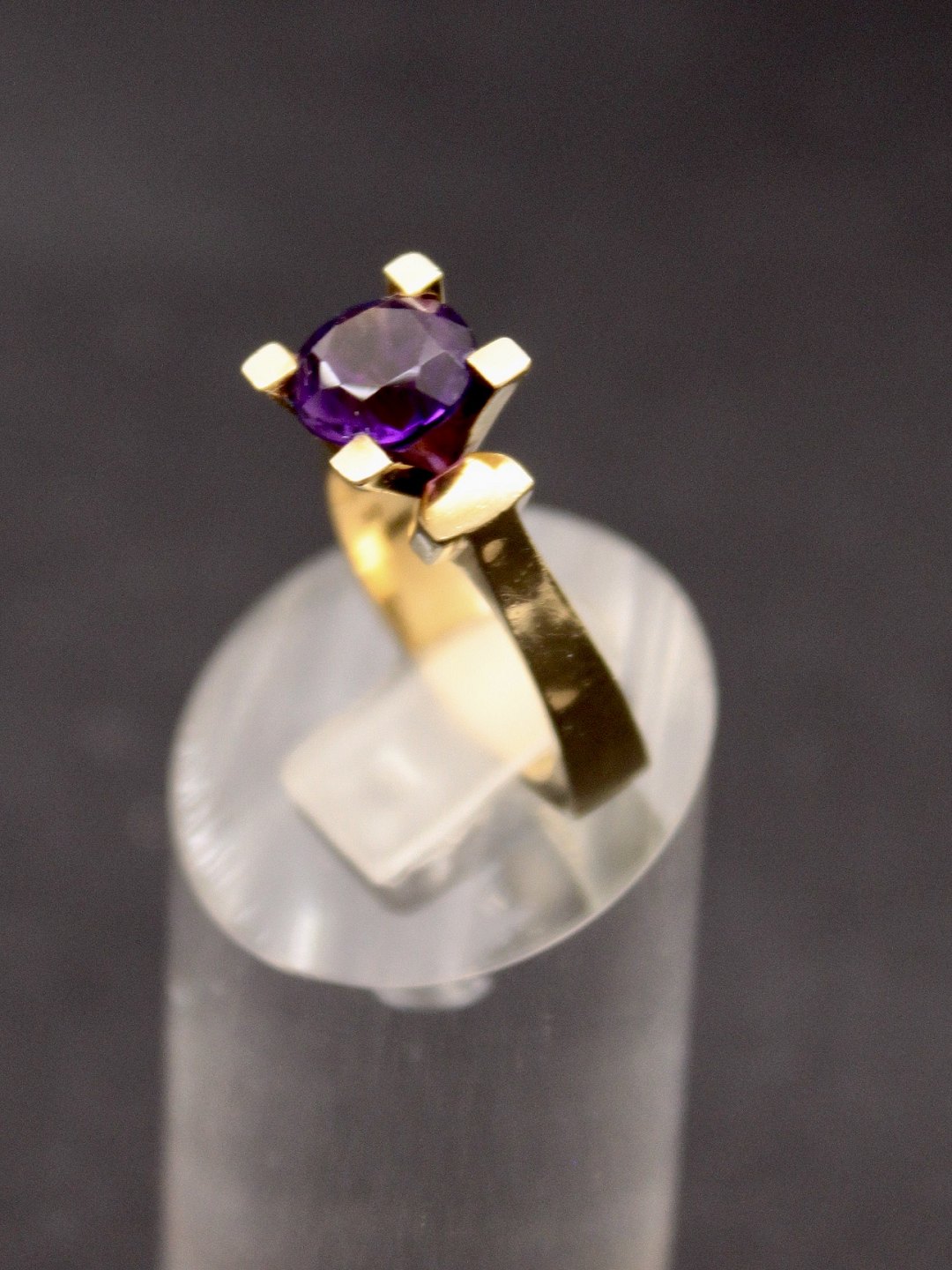 14 karat guld ring størrelse 52 med ametyst fra guldsmed Jørgen Larsen København emne nr. 536044