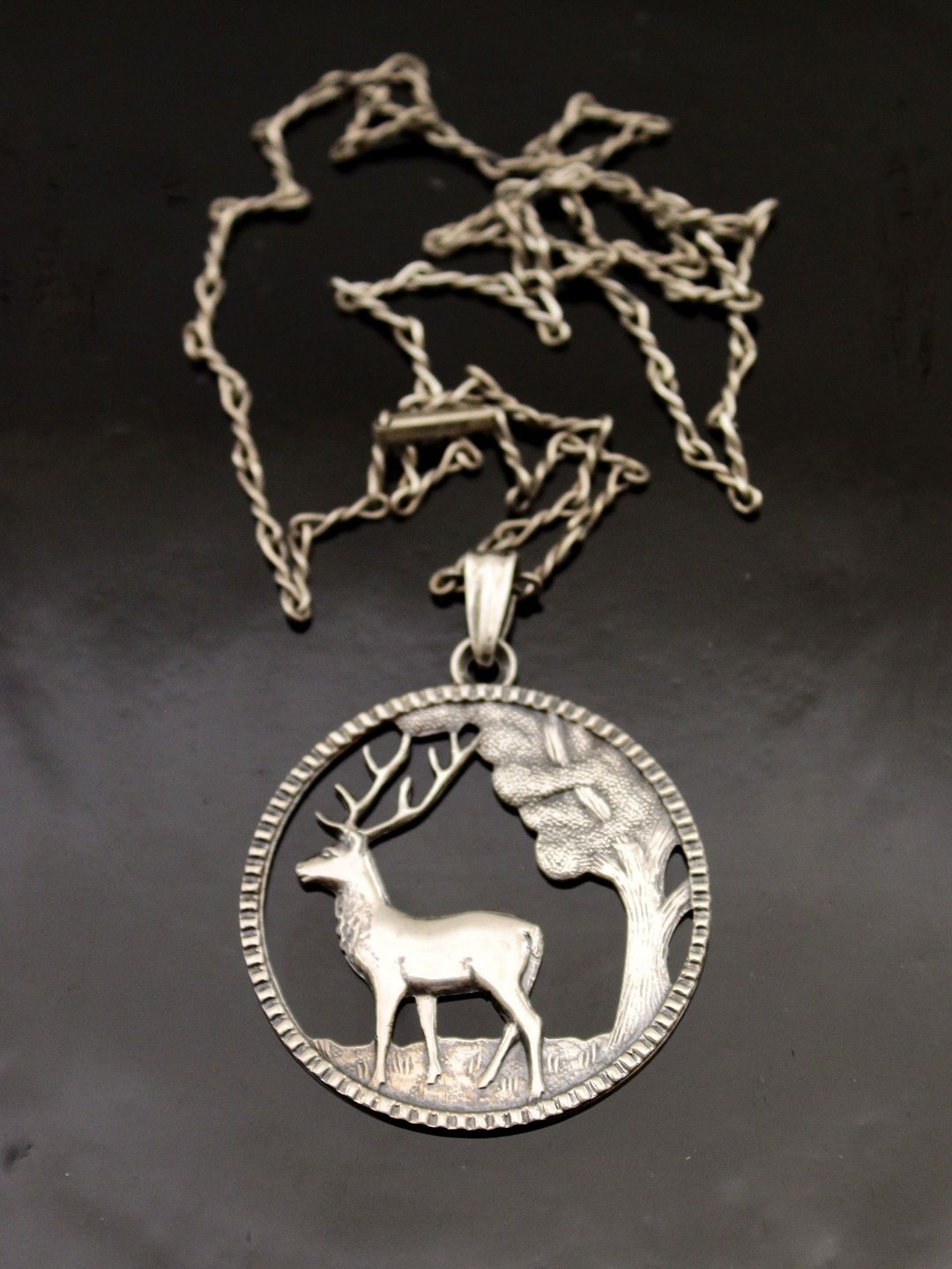 Art deco 830 sølv vedhæng Ø 4,2 cm. og kæde 58 cm. fra sølvsmed Hans Jensen København emne nr. 537062