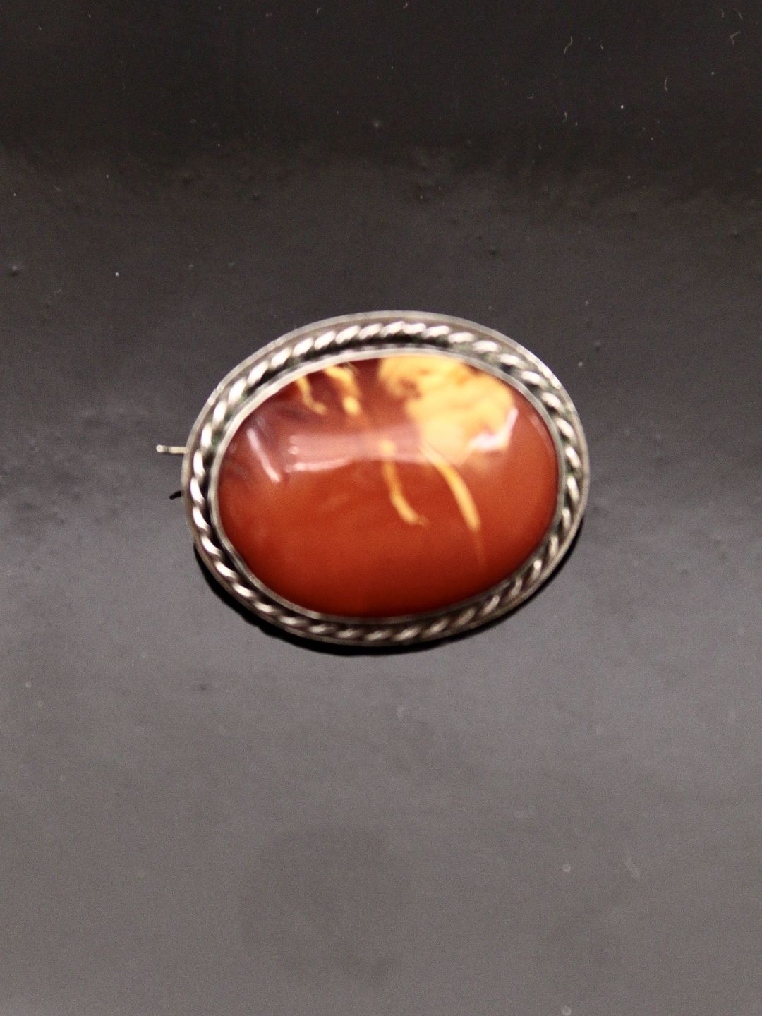 Brooch 3.1 x 2.5 cm. silver with amber item no. 537762