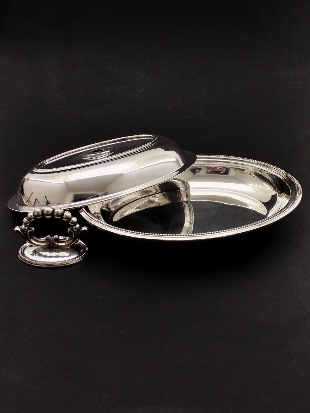 Forsølvet engelsk lågfad L. 29,5 cm. emne nr. 538119