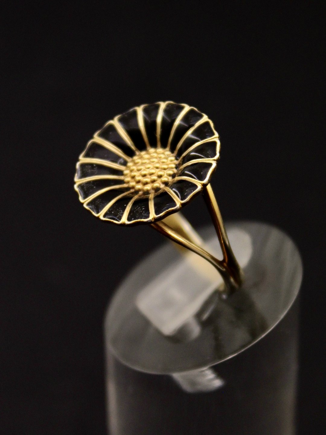 Georg Jensen forgyldt sterling sølv ring størrelse 59 med sort emalje D 1,8 cm. emne nr. 539390