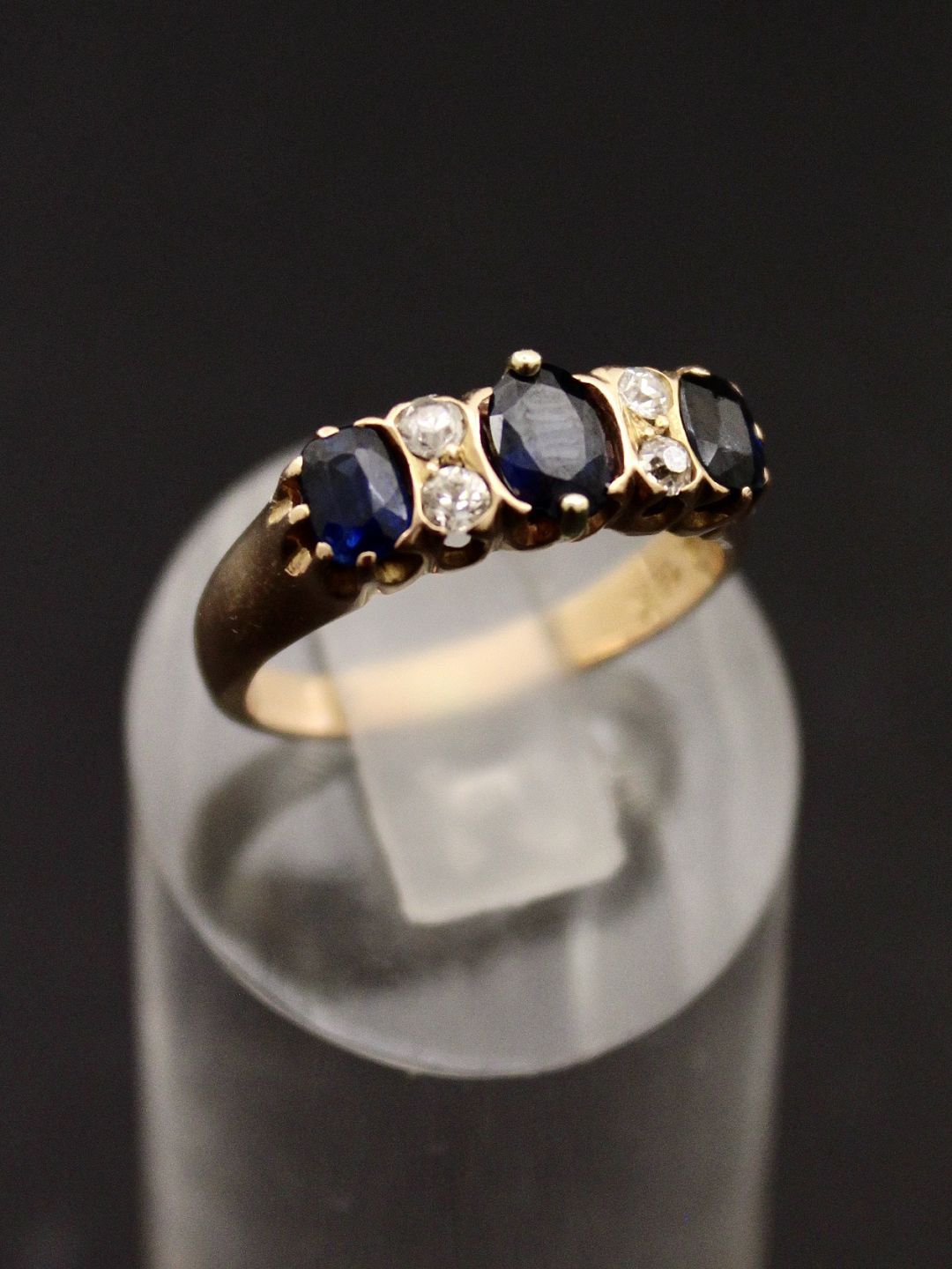 14 karat guld ring størrelse 54 med diamanter og safirer emne nr. 543043