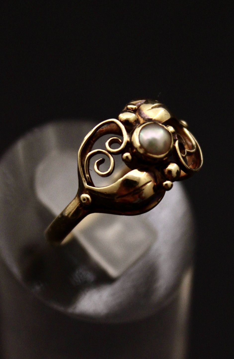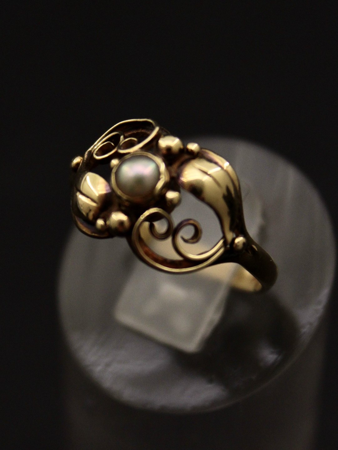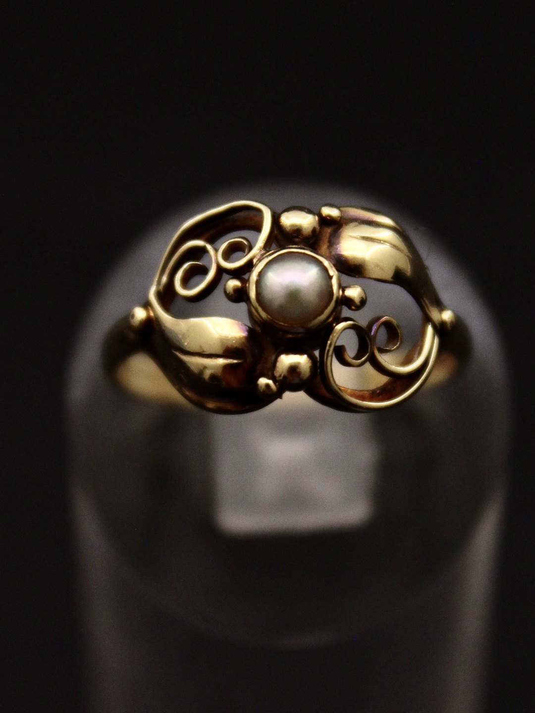 14 karat vintage guld ring størrelse 55 med perle emne nr. 543120