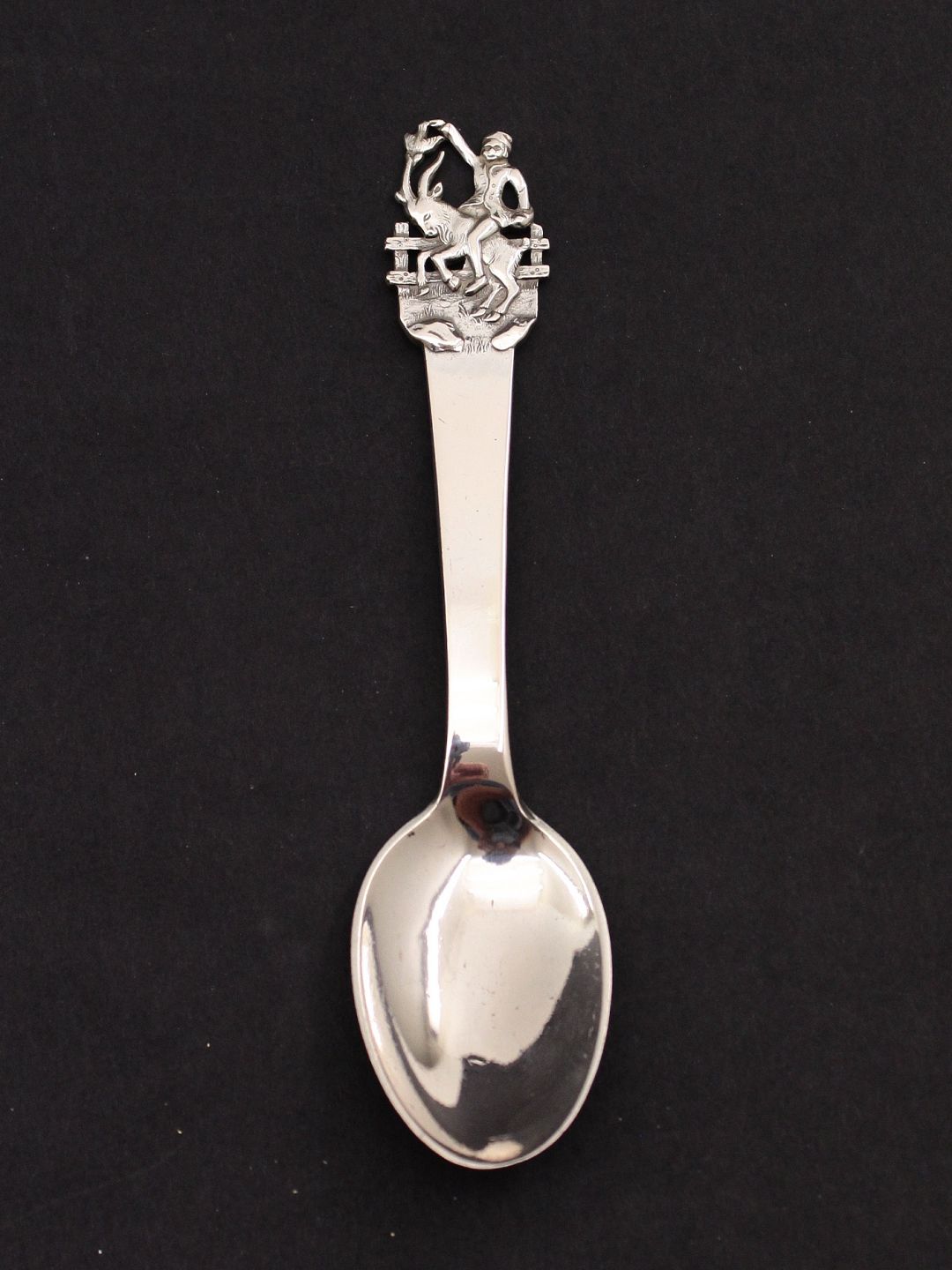 H C Andersen barne ske 14,5 cm. "Klodshans" tretårnet sølv flot ingen graveringer emne nr. 543193