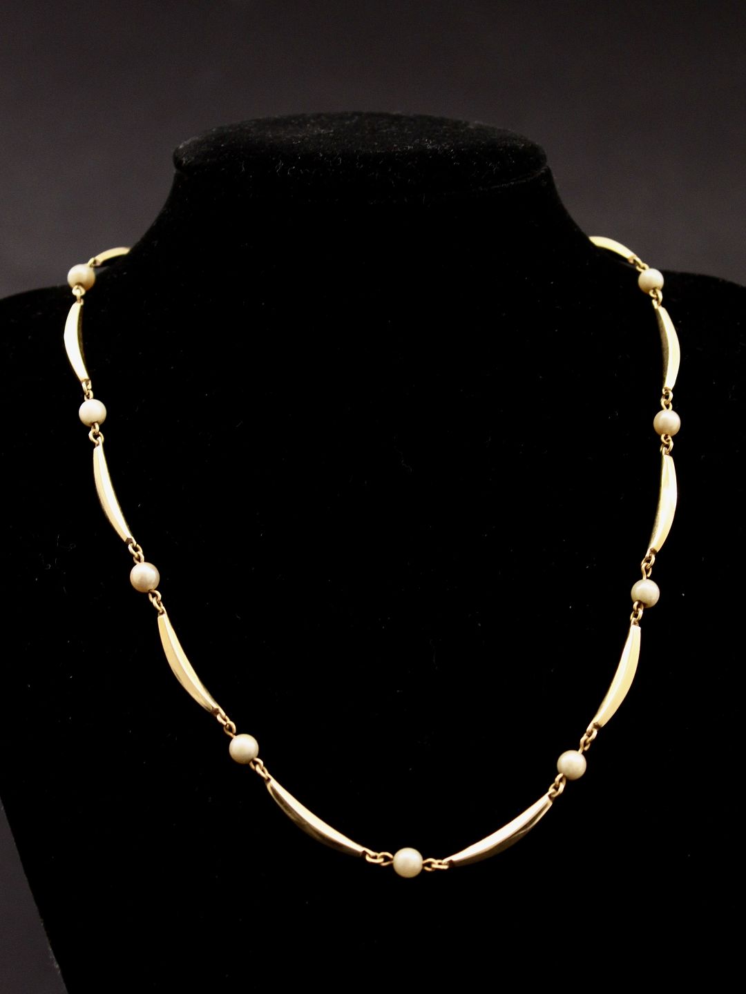 14 karat guld halskæde 43 cm. med ægte perler fra guldsmed Herman Siersbøl København emne nr. 545295