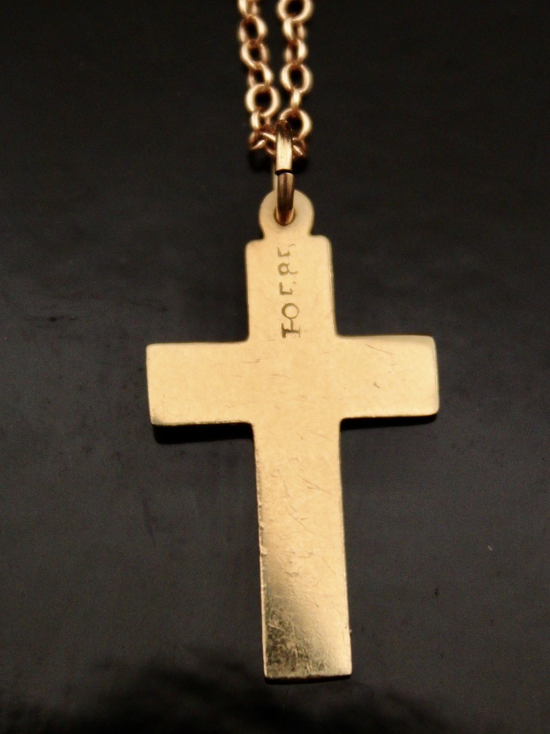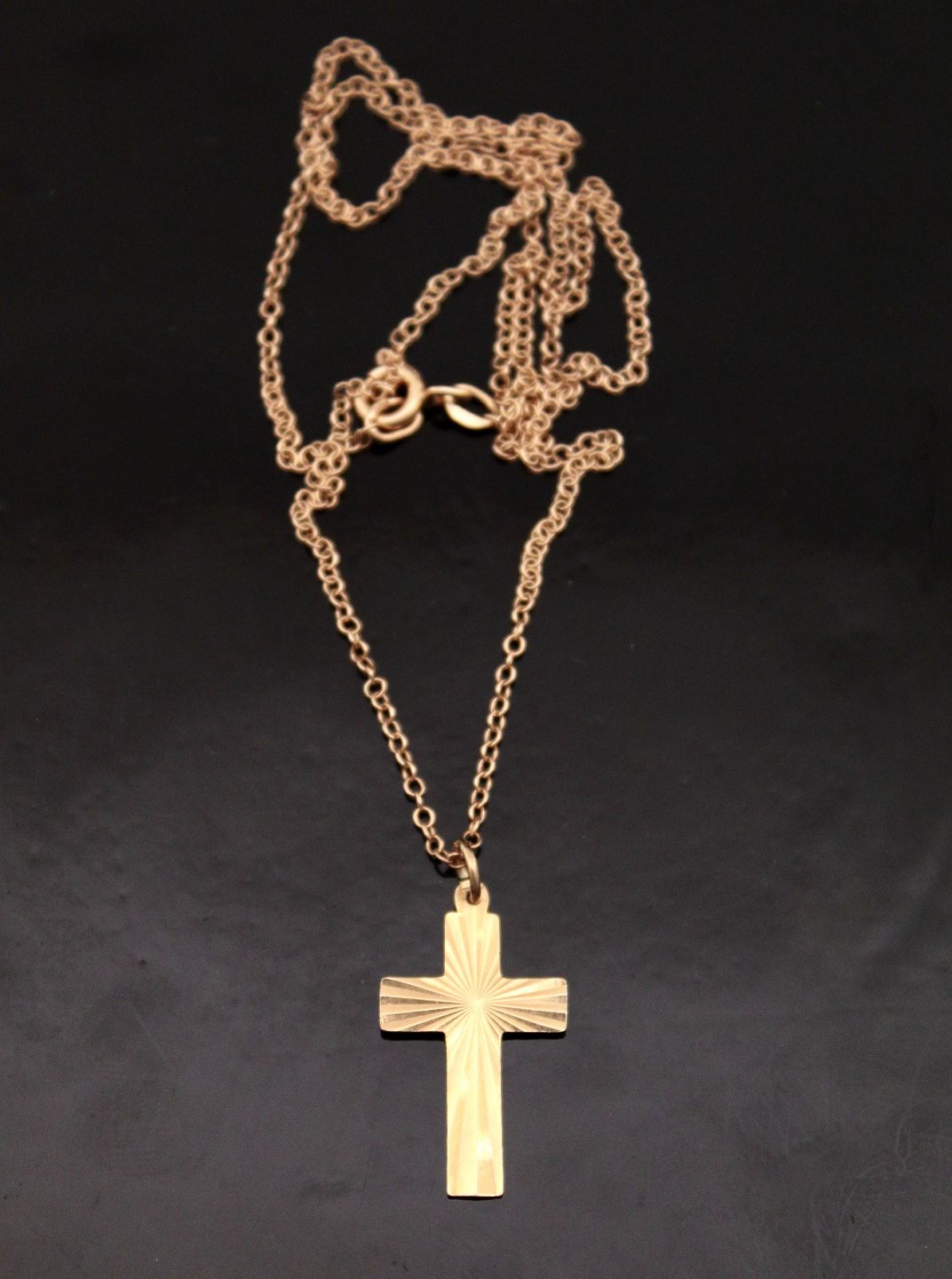14 karat guld kors 2,5 x 1,4 cm. og kæde 50 cm. emne nr. 546711